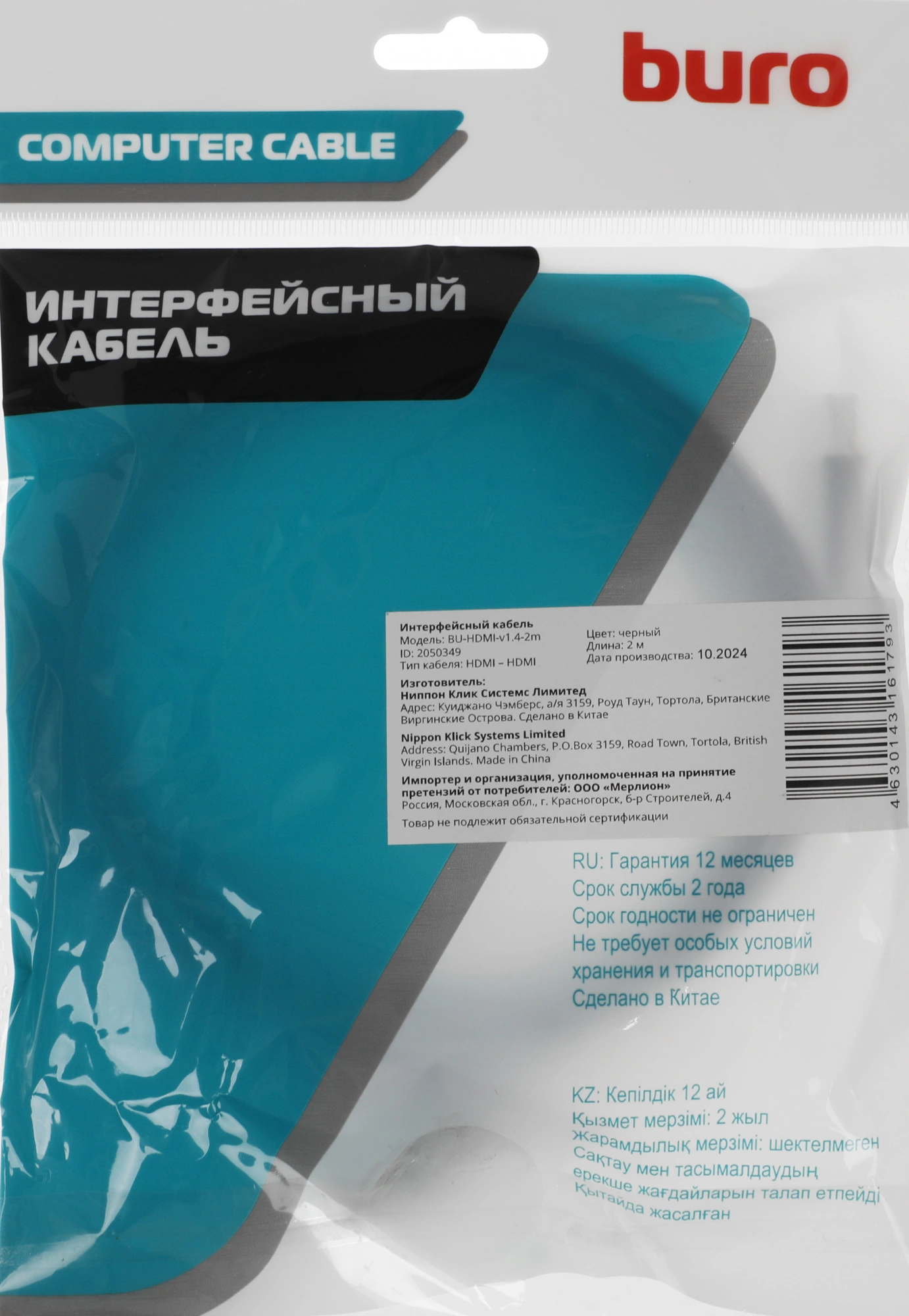 Кабель аудио-видео Buro HDMI (m)/HDMI (m) 2м. черный (BU-HDMI-V1.4-2M)