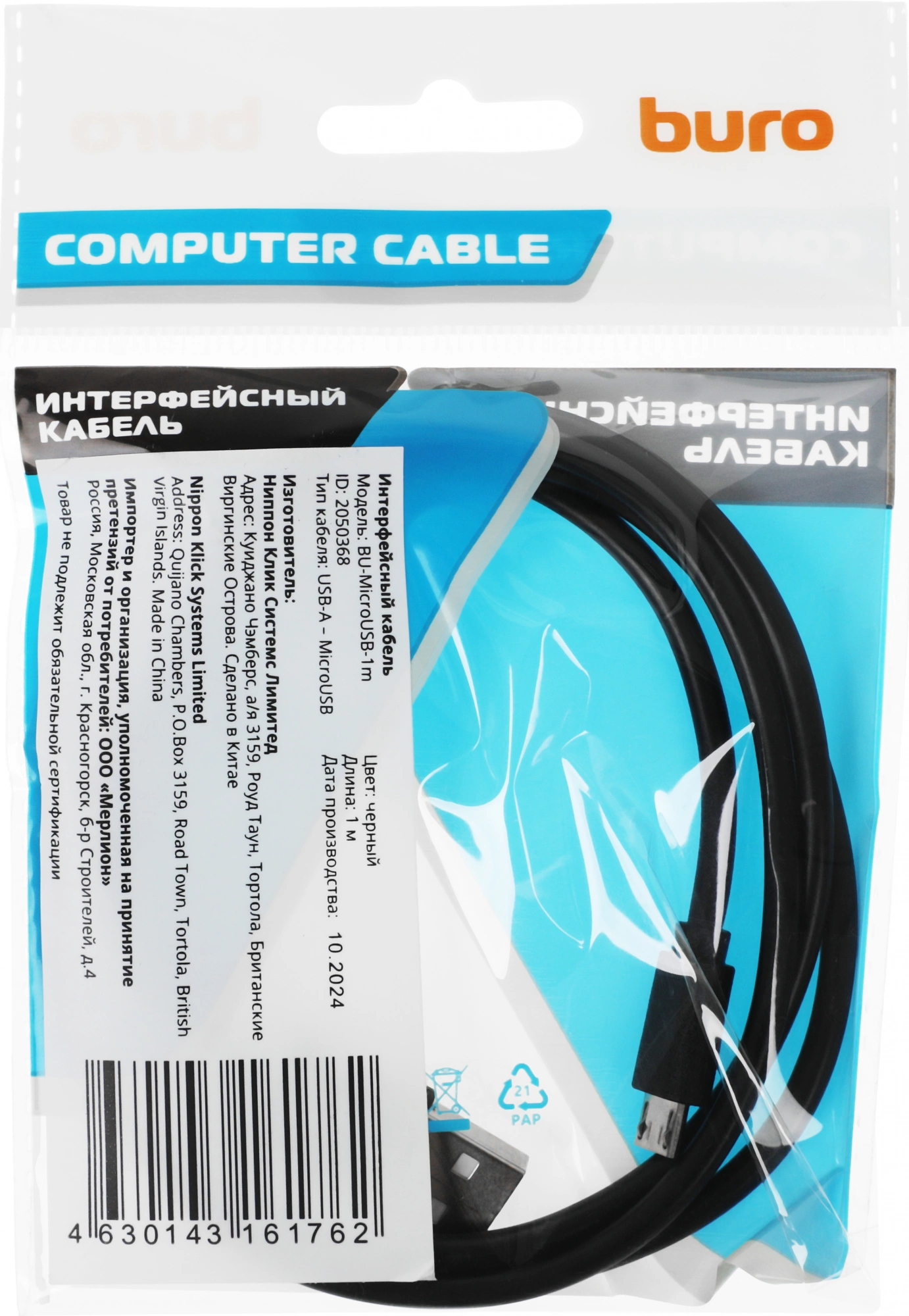 Кабель Buro BU-MICROUSB-1M USB (m)-micro USB (m) 1м черный
