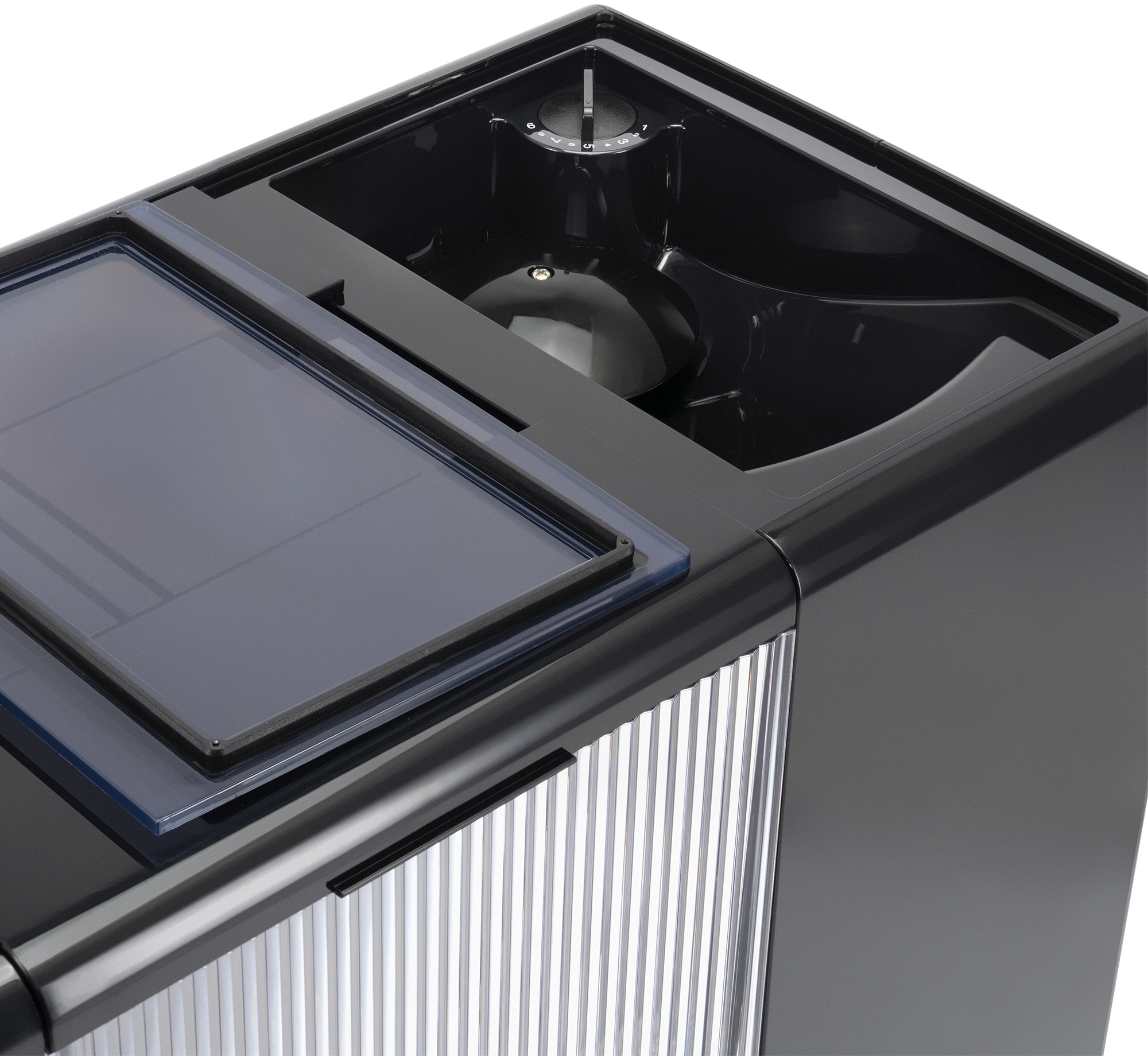 Прибор оснащен итальянской помпой фирмы ULKA с давлением 19 бар для максимального раскрытия вкуса любого сорта кофе. Для измельчения зерен в устройстве имеется профессиональная коническая кофемолка с контейнером на 200г и 9 степенями помола.