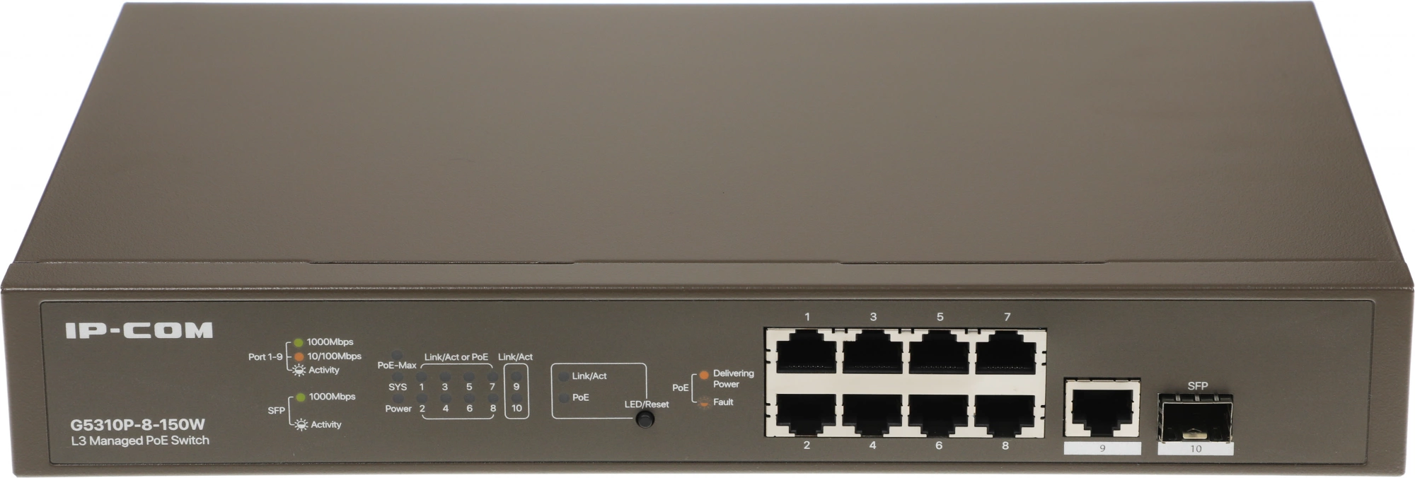 (L3) 8x1Гбит/с 1xКомбо(1000BASE-T/SFP) 1SFP 8PoE ...