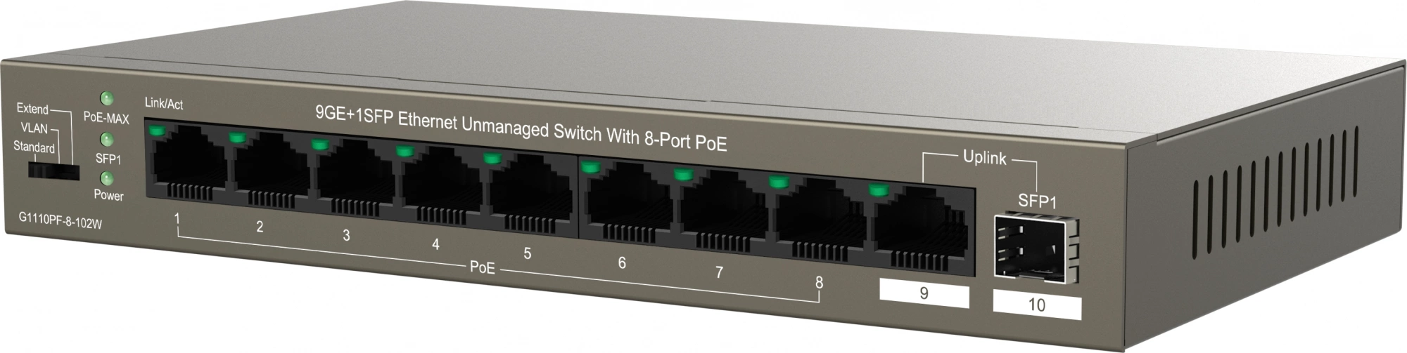 (L2) 9x1Гбит/с 1xКомбо(1000BASE-T/SFP) 1SFP 8PoE ...