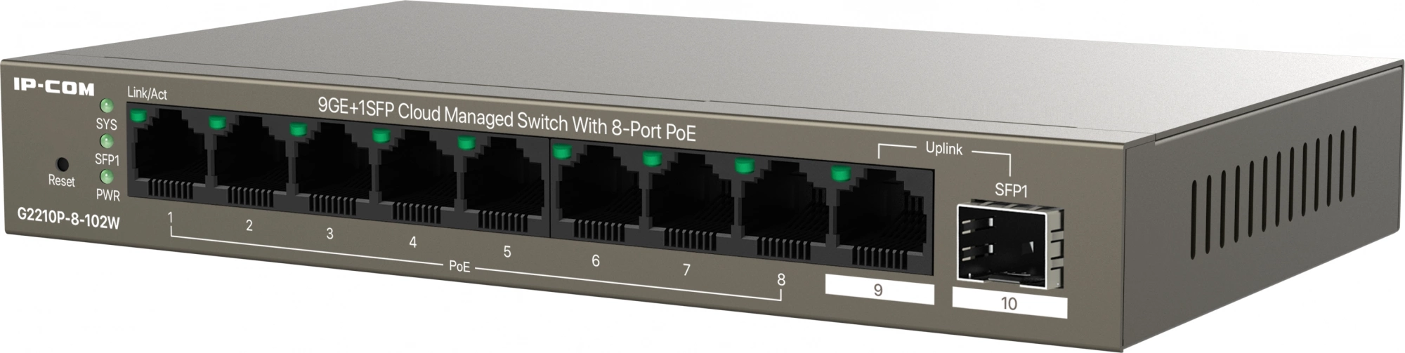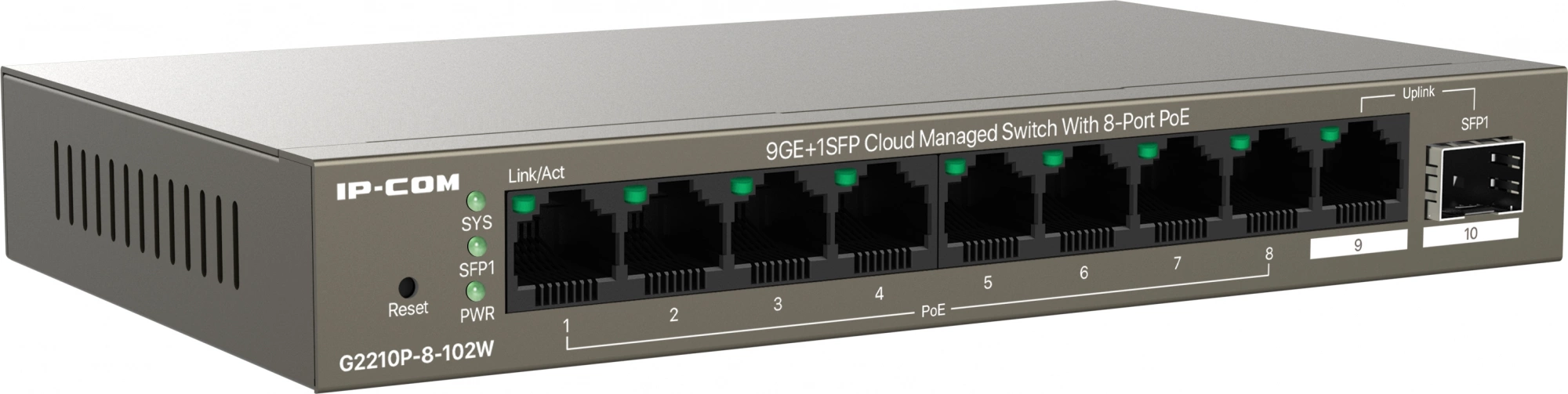 (L2) 9x1Гбит/с 1xКомбо(1000BASE-T/SFP) 1SFP 8PoE ...