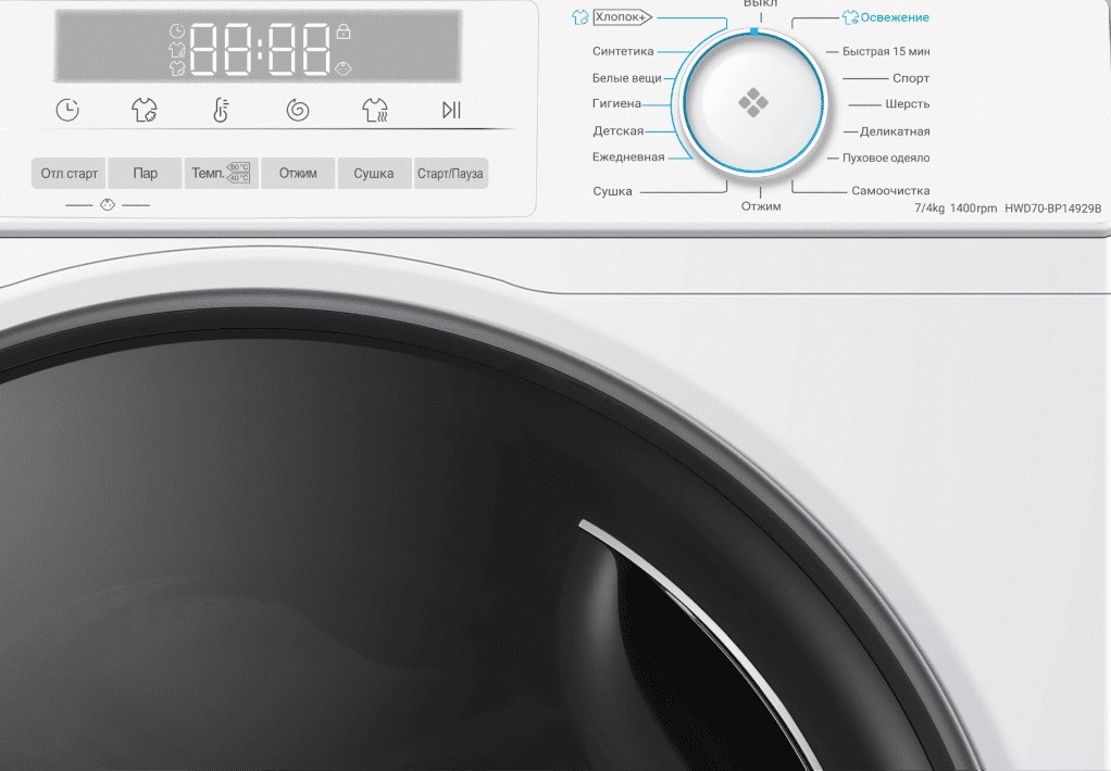 Экспресс-стирка 14 мин, Быстрая стирка, Деликатные вещи, Сушка, Синтетика, Шерсть, Детские вещи, Ежедневная стирка, Спорт, Отжим, Самоочистка, Хлопок, Гигиена, Пуховое одеяло, Стирка с паром