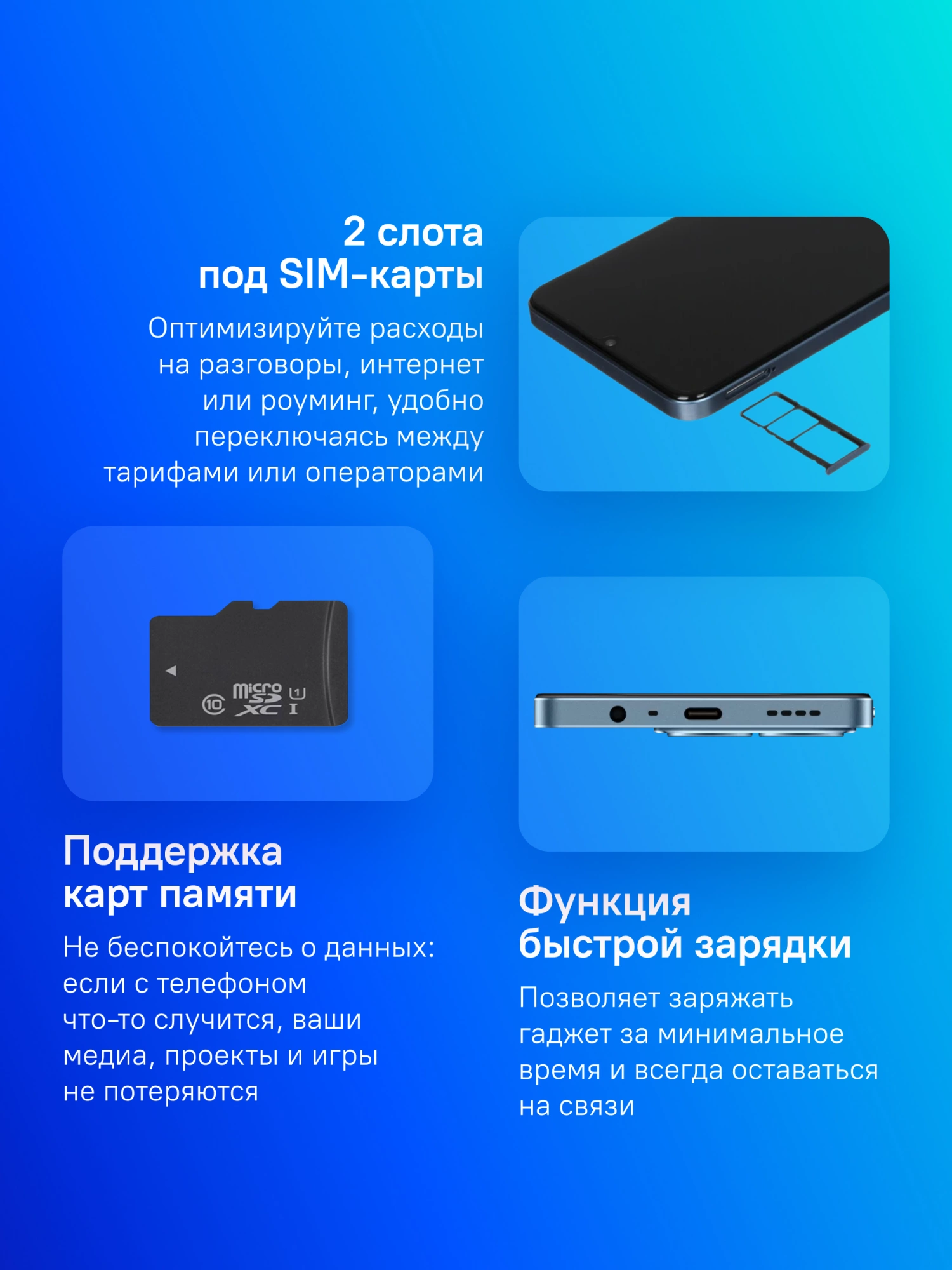 Смартфон, зарядное устройство, кабель USB Type-C, скрепка для извлечения карты, защитный чехол, защитная пленка, документация