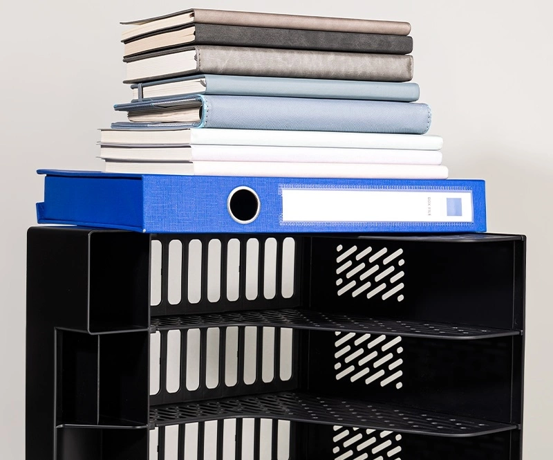 Лоток вертикальный Deli E9849 BLACK 4отд. сборный для бумаг 325x320x275мм черный пластик пластиковый пакет