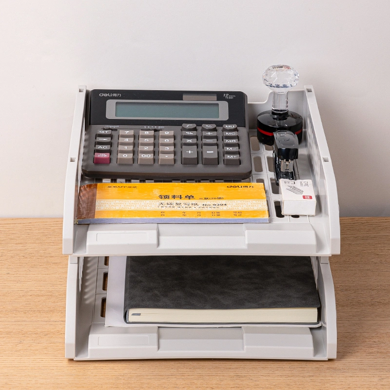 Лоток горизонтальный Deli E9212 GREY сборный для бумаг 325x241x155мм серый пластик (упак.:2шт) пластиковый пакет