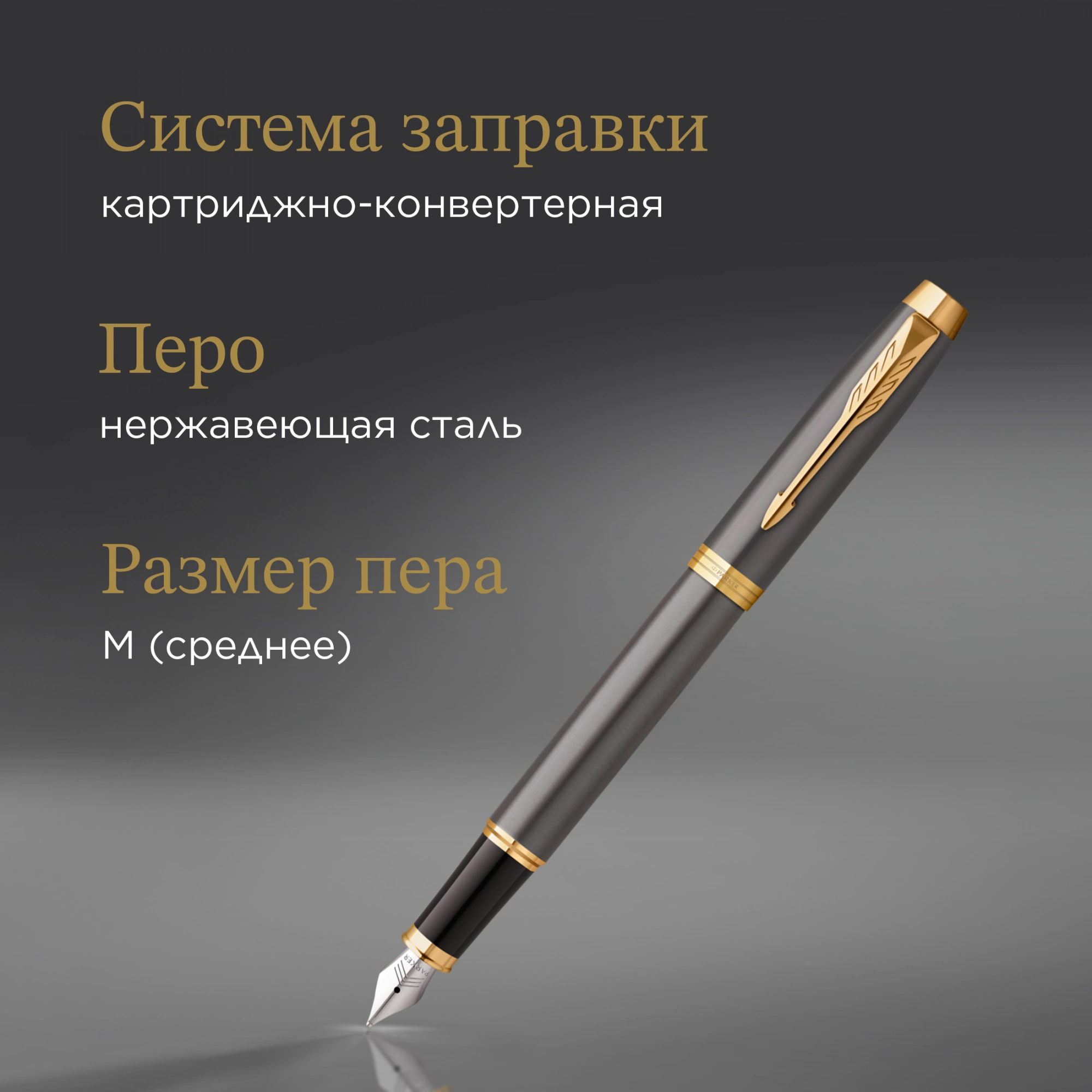 Серо-золотая отделка Parker IM сочетается с роскошным стилем и прочно позиционирует коллекцию как образец изысканности Parker. Сложная детализация и позолоченное PVD-покрытие зажима и латунных накладок, а также гравированное перо идеально сочетаются с колпачком и корпусом из нержавеющей стали, красиво отделанными классическим серым лаком. Это неизменный фирменный дизайн, который воплощает в себе саму суть элегантности и сдержанности Parker. Гладкая, коническая форма Parker IM в сочетании с надежной отделкой делает его высокофункциональным и надежным партнером. Благодаря элегантному, отполированному и профессиональному силуэту это идеальный пишущий инструмент, который произведет неизгладимое впечатление и поможет вам полностью раскрыть свой потенциал. В ручках Parker используется более чем столетний опыт в области изящного письма, в результате чего создаются тщательно продуманные пишущие инструменты, обеспечивающие поистине исключительное качество письма.