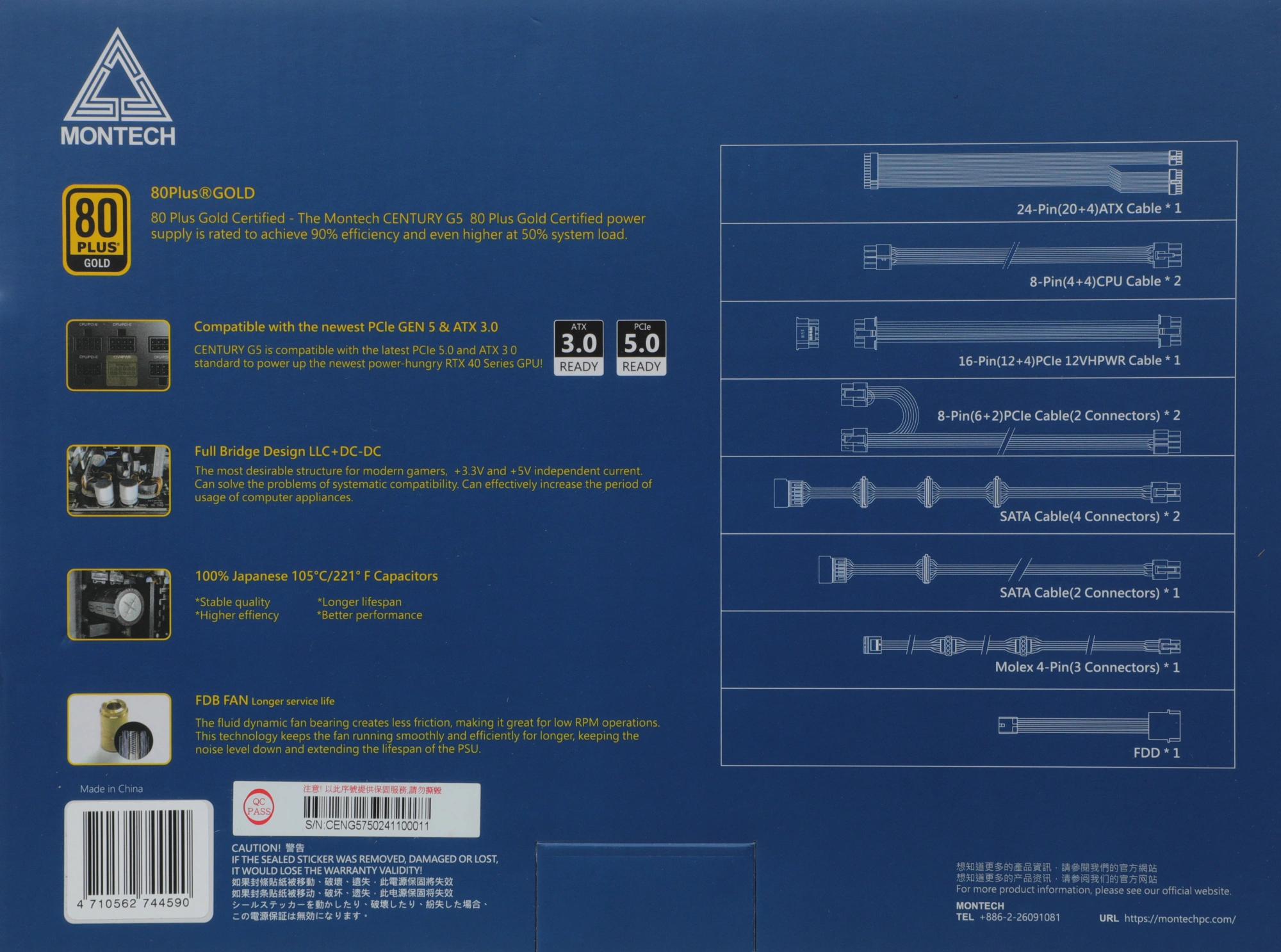 80+ gold (20+4pin) APFC 120mm fan 10xSATA Cab Mana...