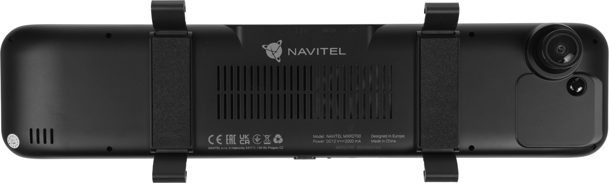Видеорегистратор NAVITEL MXR2700, электростатическая пленка, автомобильное зарядное устройство 12 В со сквозным питанием, 2 предохранителя, кабель для скрытой установки длиной 400 см., камера заднего вида, кабель для подключения камеры заднего вида, картридер, салфетка из микрофибры, инструкция.