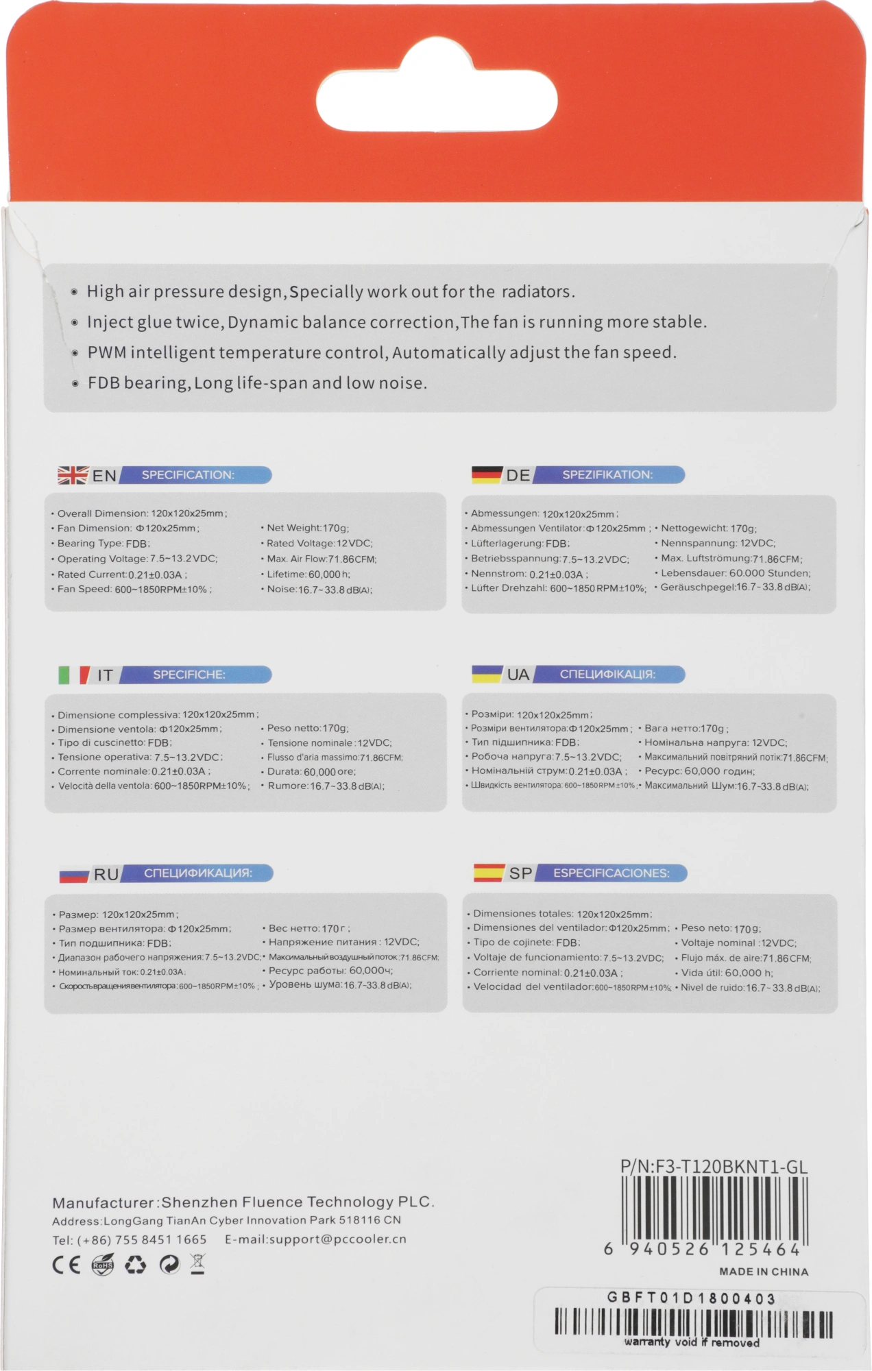 120х120x25 черный 4-pin 33.8дБ (F3-T120BKNT1-GL) ...