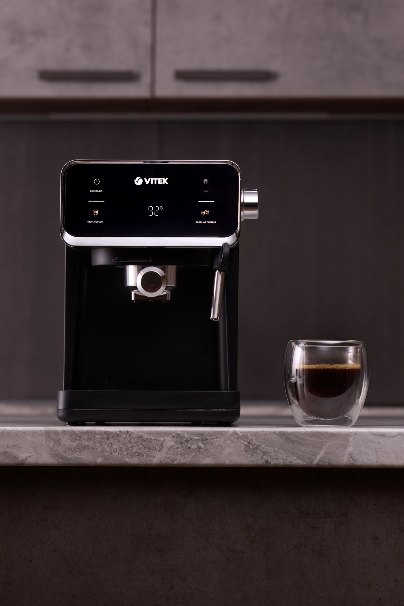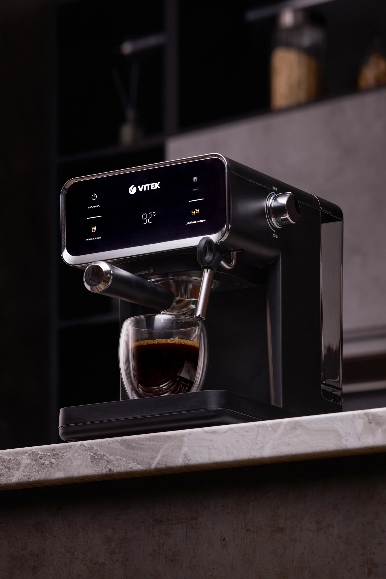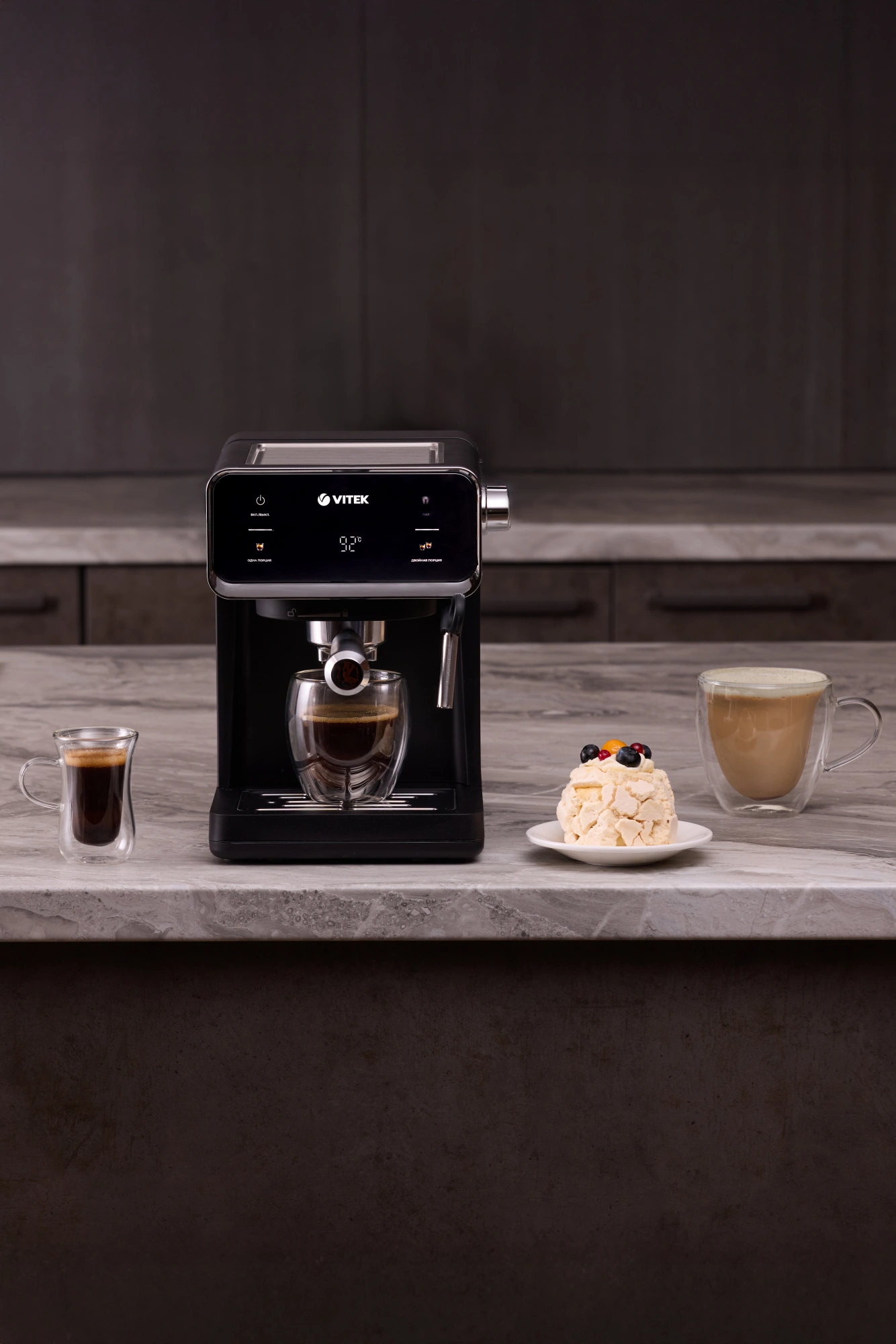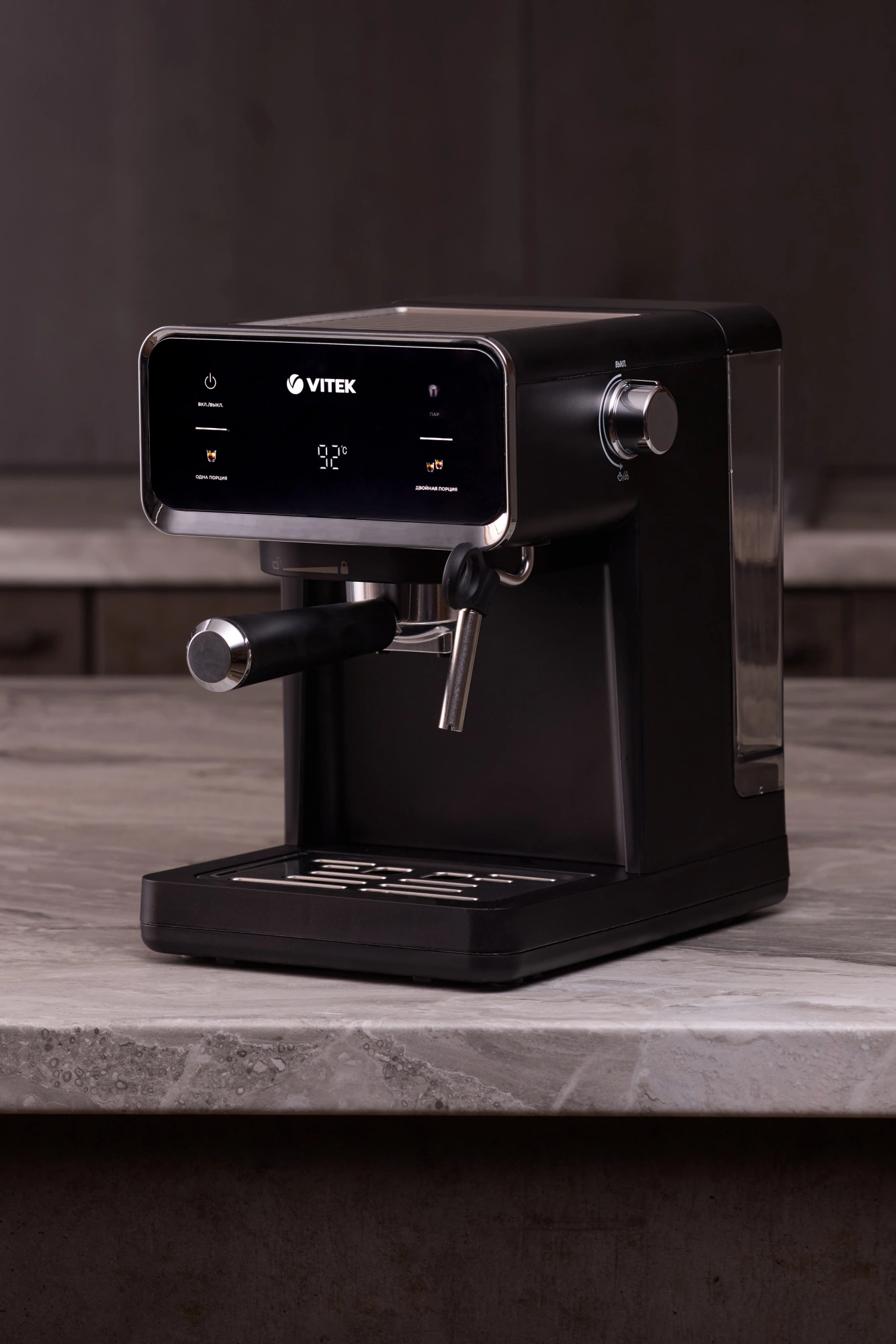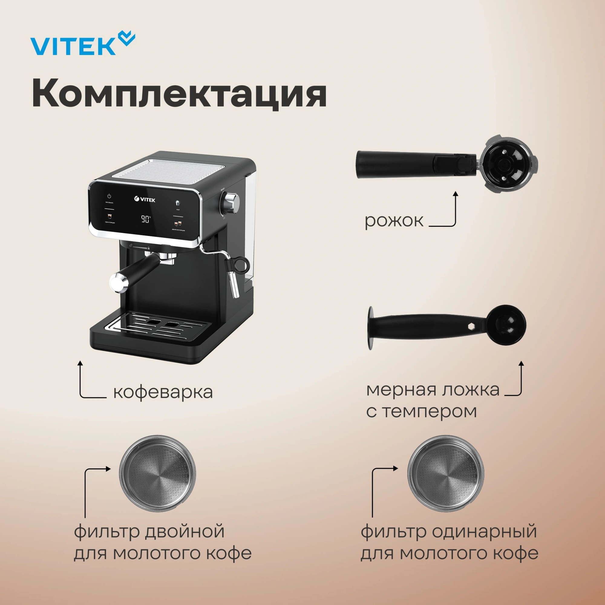 дисплей, капучинатор, панель для подогрева чашек, съемный поддон для капель, съемный резервуар для воды, темпер