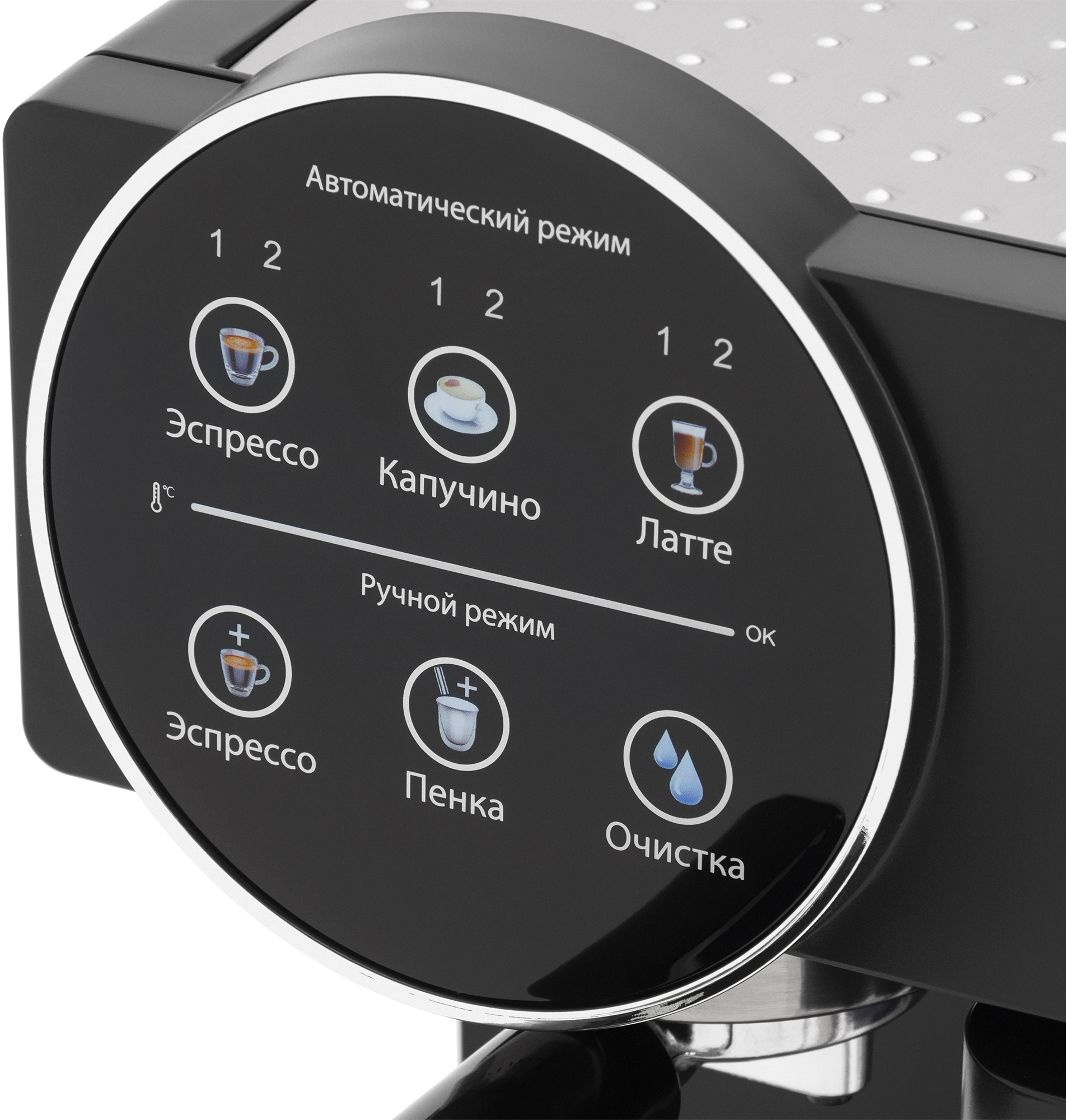 дисплей, капучинатор, панель для подогрева чашек, съемный поддон для капель, съемный резервуар для воды, темпер