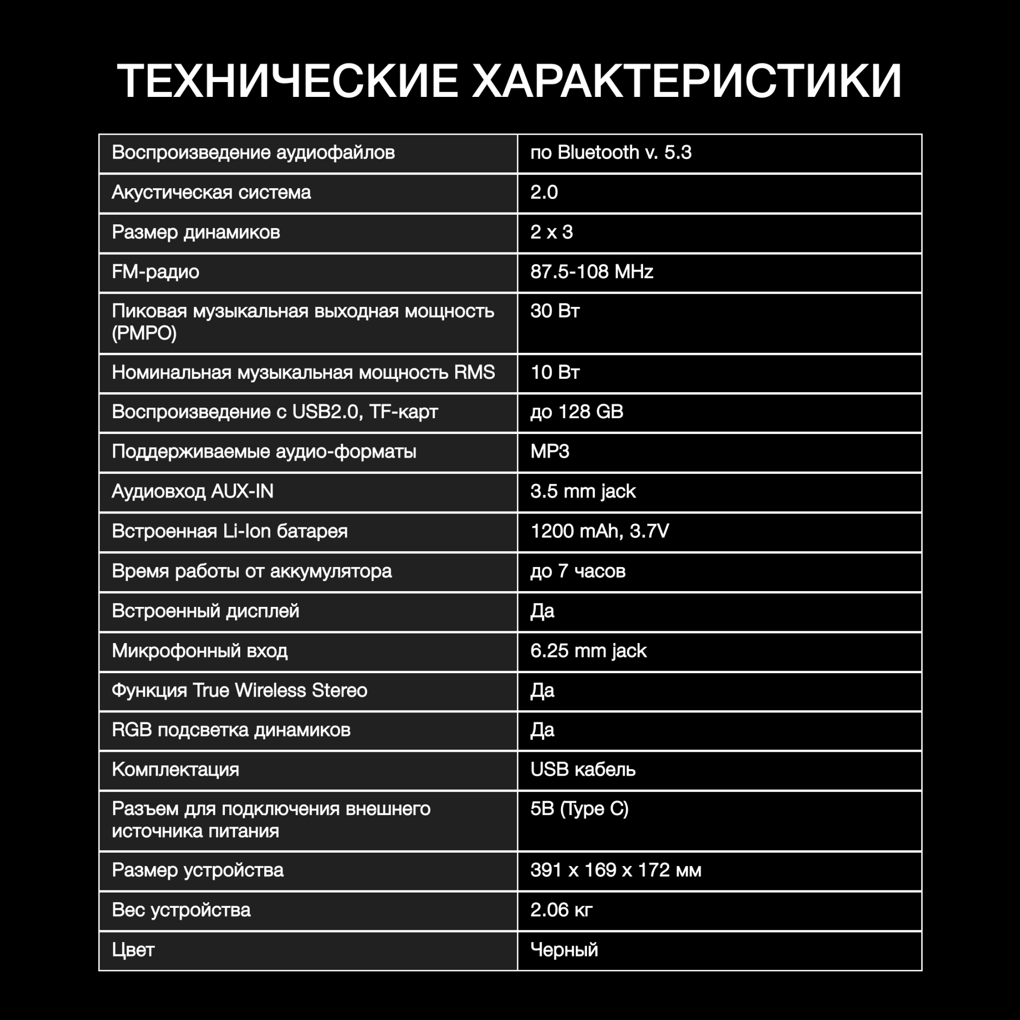 черный 15Вт FM USB BT SD/MMC