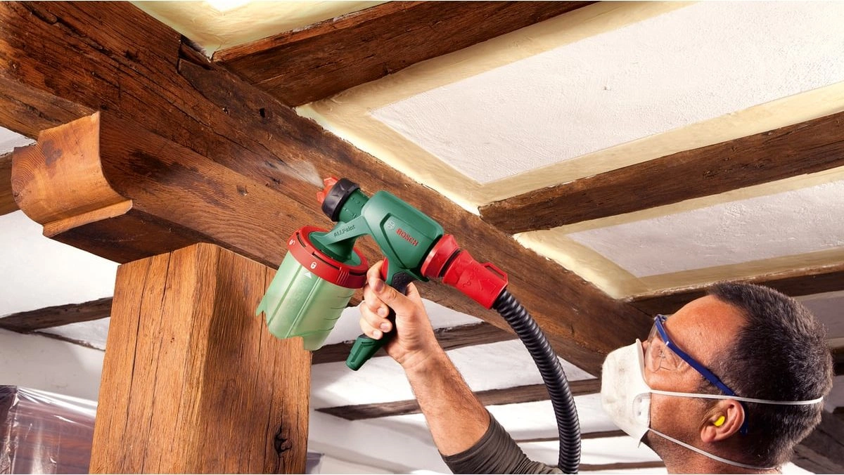 В комплекте: насадка для краски для стен 2.5 мм., насадка для лаков 3 мм., насадка для глазури 2 мм., фильтр краски, чистящая щетка, 2 емкости для краски по 1000 мл с крышкой.