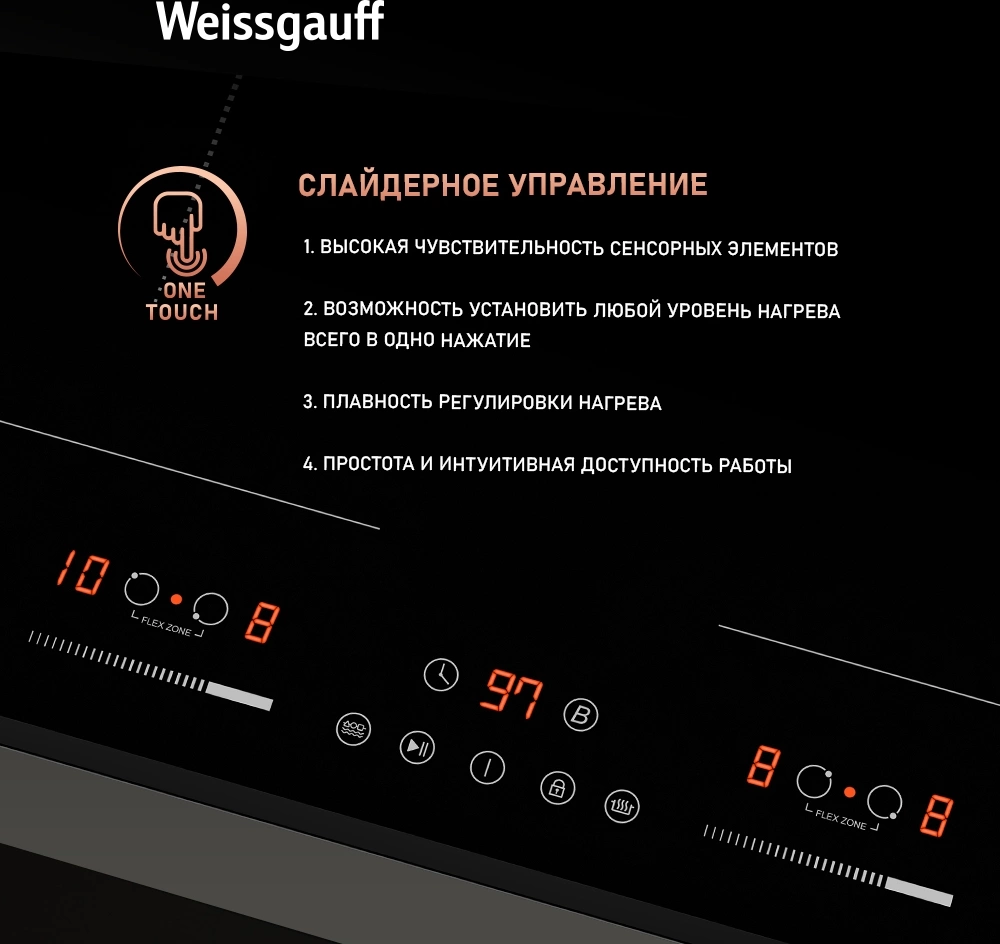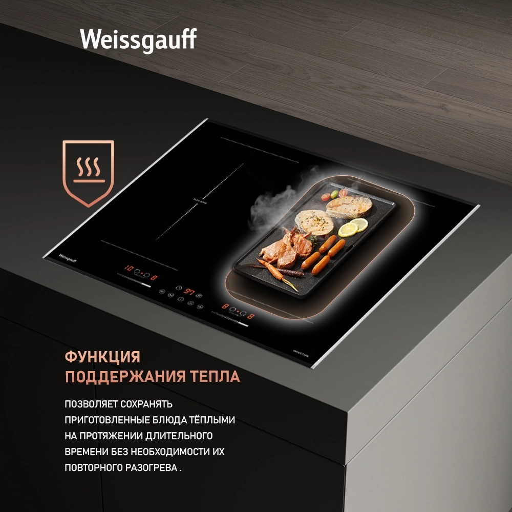 блокировка управления (защита от детей), защитное отключение, распознавание наличия посуды