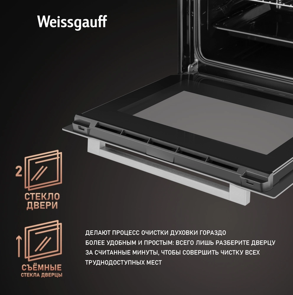 дисплей, полностью стеклянная внутренняя поверхность дверцы духовки, утапливаемые переключатели, электронный программатор