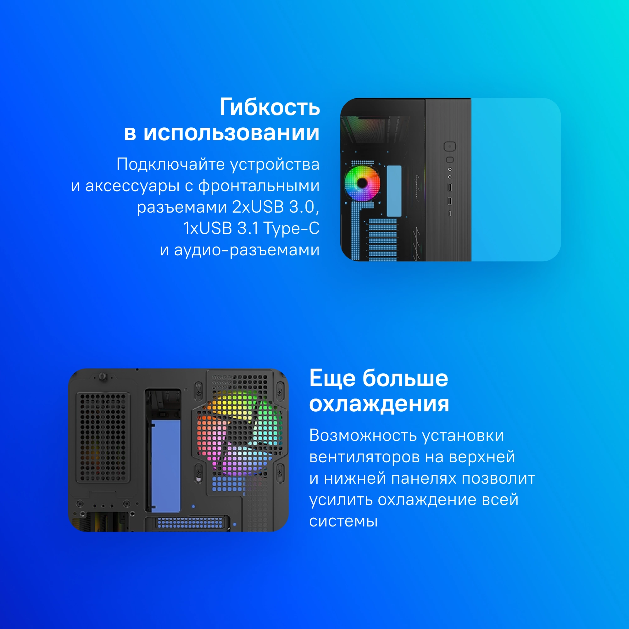 черный без БП ATX 8x120mm 6x140mm 2xUSB3.0 audio b...
