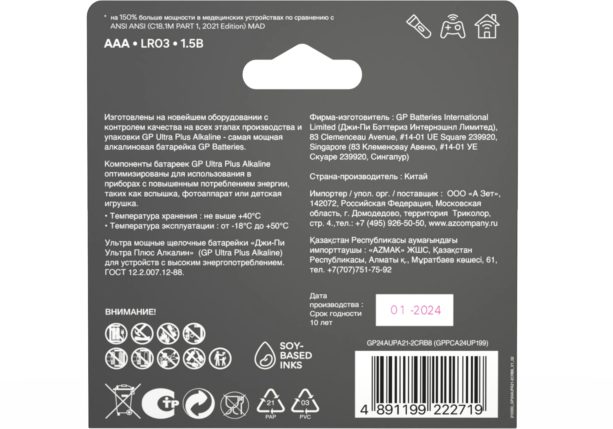 Батарея GP Ultra Plus Alkaline 24AUPA21-2CRB8