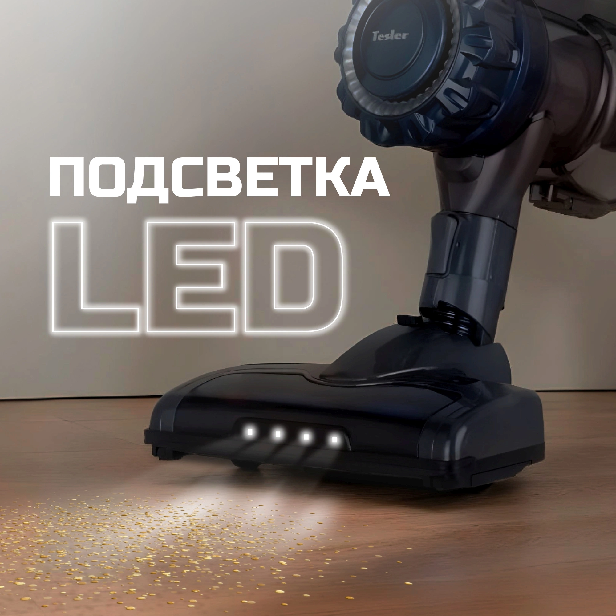 место для хранения насадок, настенное крепление, подсветка зоны уборки