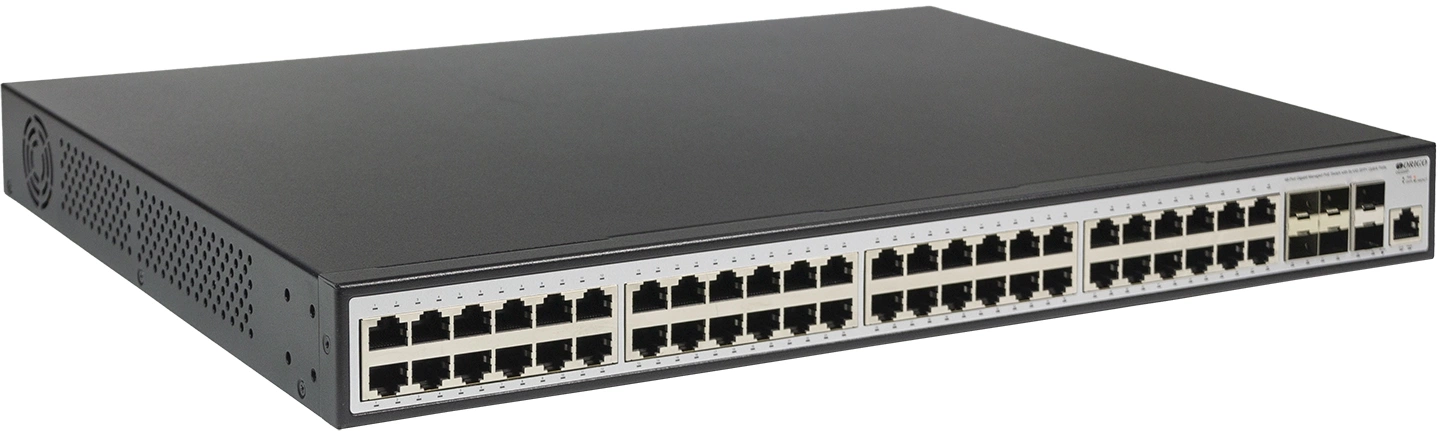 Коммутатор OS3254P, кабель питания, консольный кабель с разъемом RJ-45, комплект для установки в 19-дюймовую стойку, краткое руководство по установке.