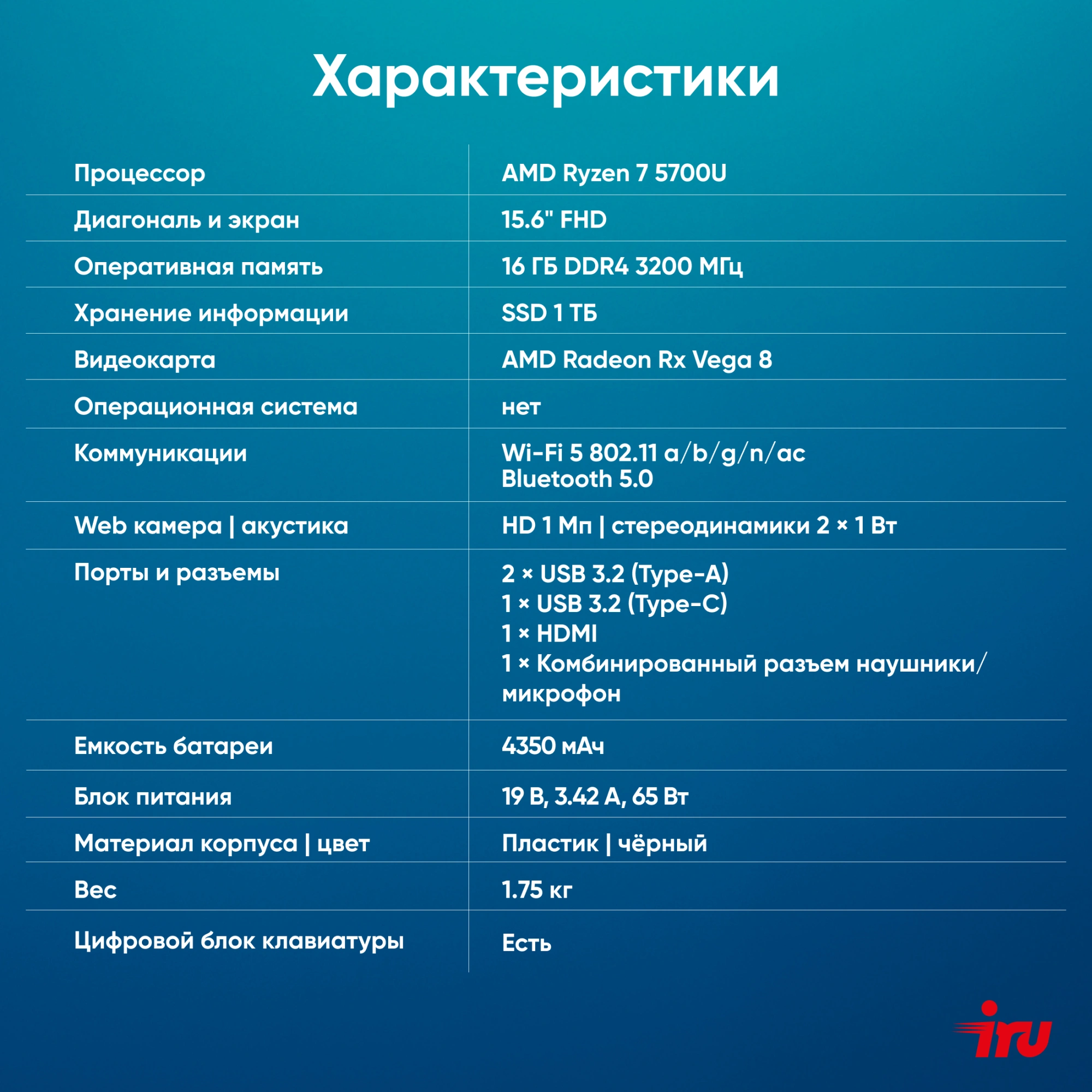 Ryzen 7 5700U 16Gb SSD1Tb AMD Radeon Graphics 15....