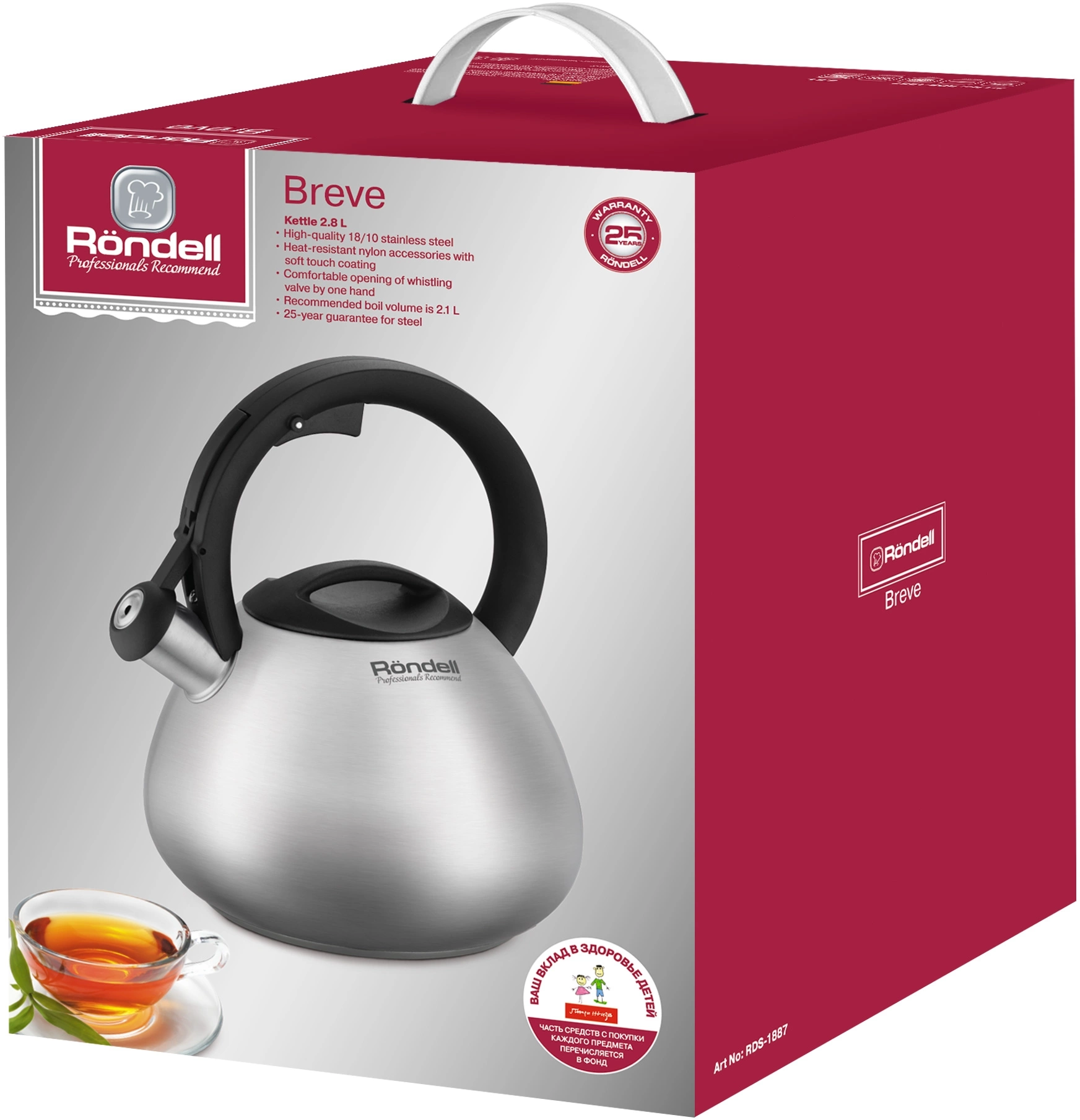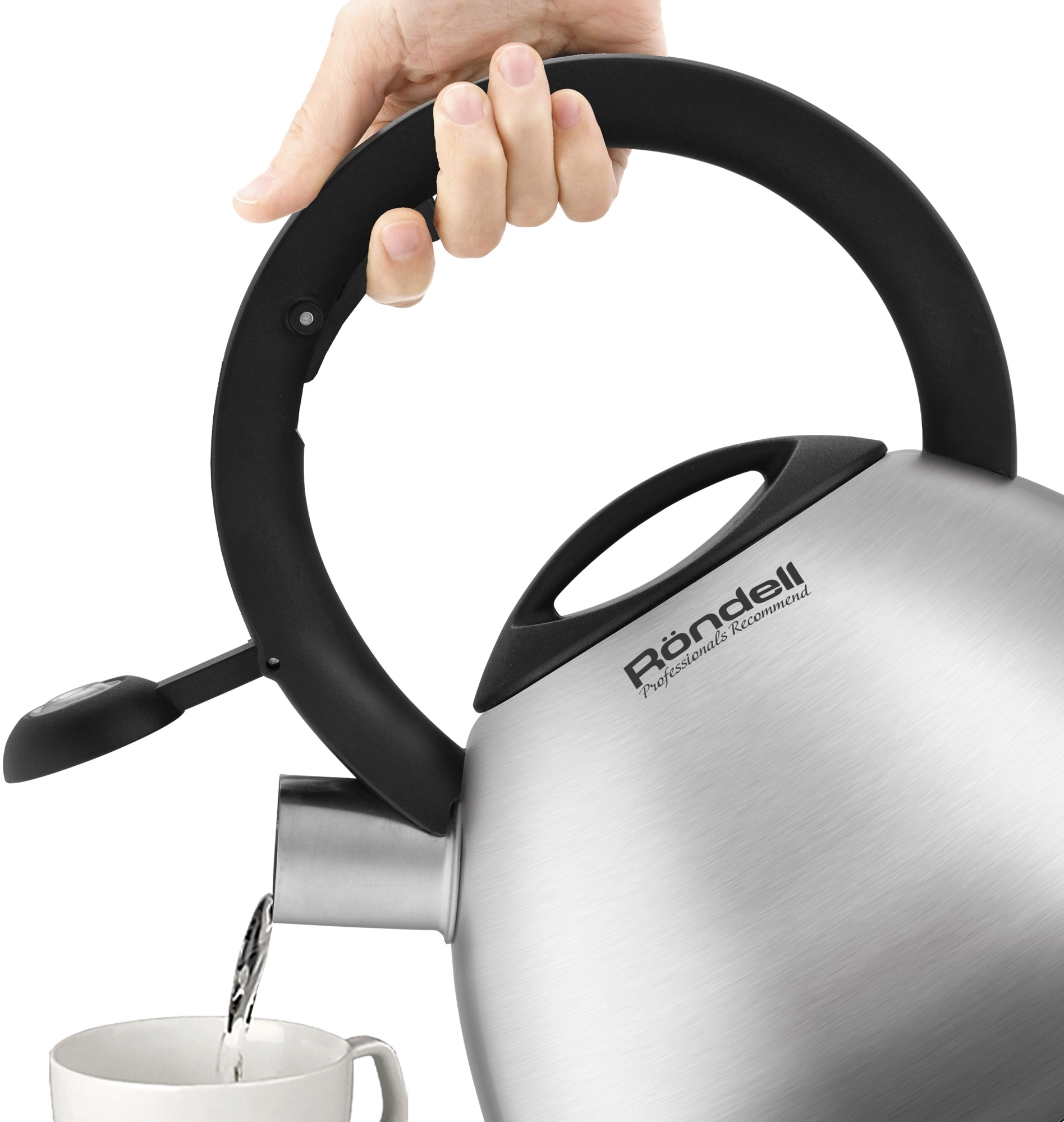 Чайник Breve также изготовлен из высококачественной нержавеющей стали — она устойчива к резким перепадам температур, механическим повреждениям и воздействию кислот. Эргономичная ручка чайника позволяет открывать свисток и наливать воду одной рукой. Чайник подходит для всех видов плит.