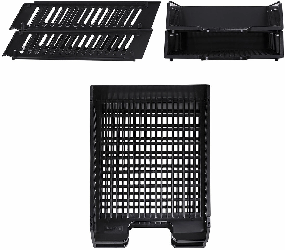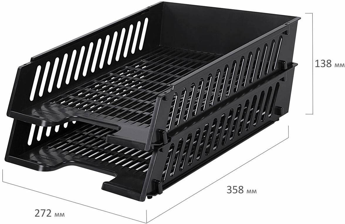 Лоток горизонтальный Brauberg 231360 Maxi 2отд. разборный для бумаг A4 358x272x138мм черный пластик (упак.:2шт) пластиковый пакет