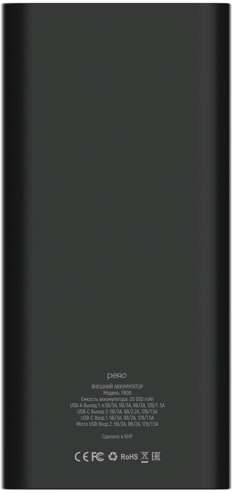 USB-А Выход 1, 2: 4.5В/5A, 5В/3A, 9В/2A, 12В/1 .5A;