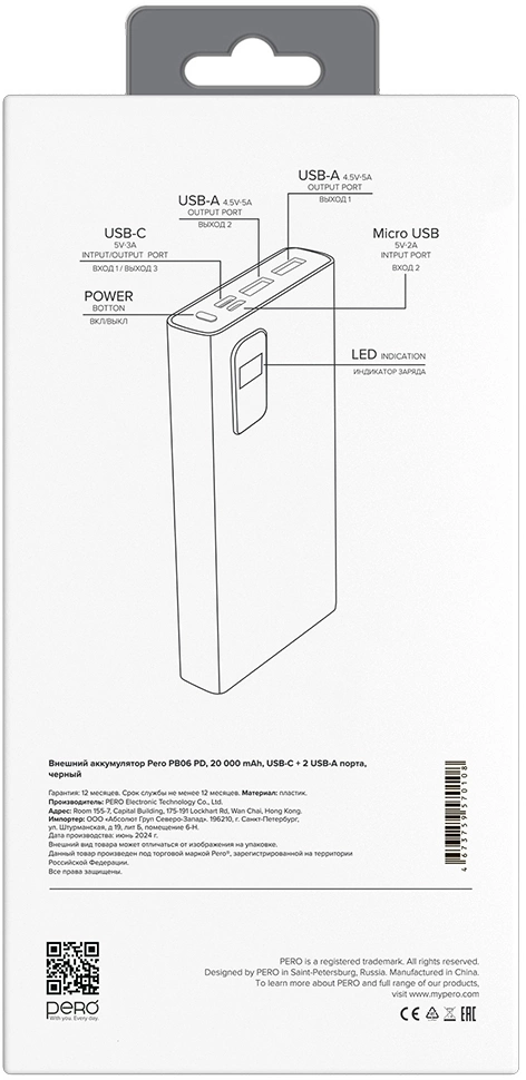USB-С Выход 3: 5В/3A, 9В/2.2A, 12В/1.5A;