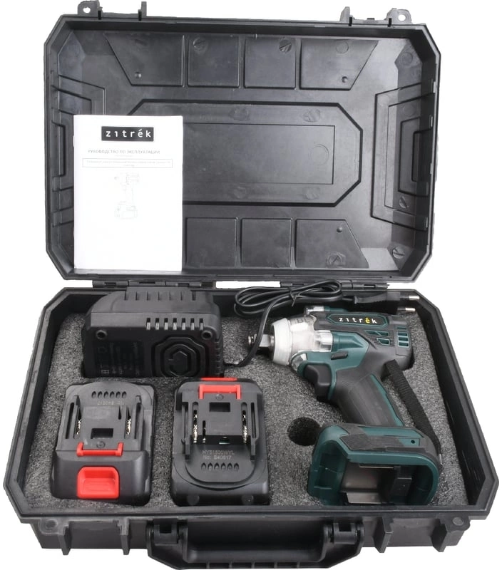 Гайковерт аккумуляторный, АКБ - 2 шт., зарядное устройство, ремешок (установлен), руководство по эксплуатации.