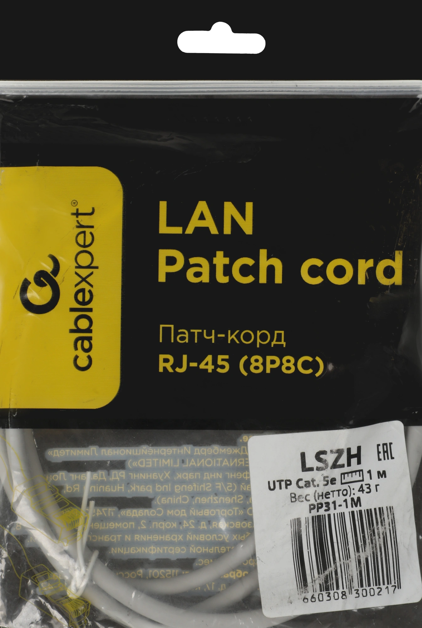 1Гбит/с UTP 4 пары cat.5E CCA molded 1м серый RJ-4...