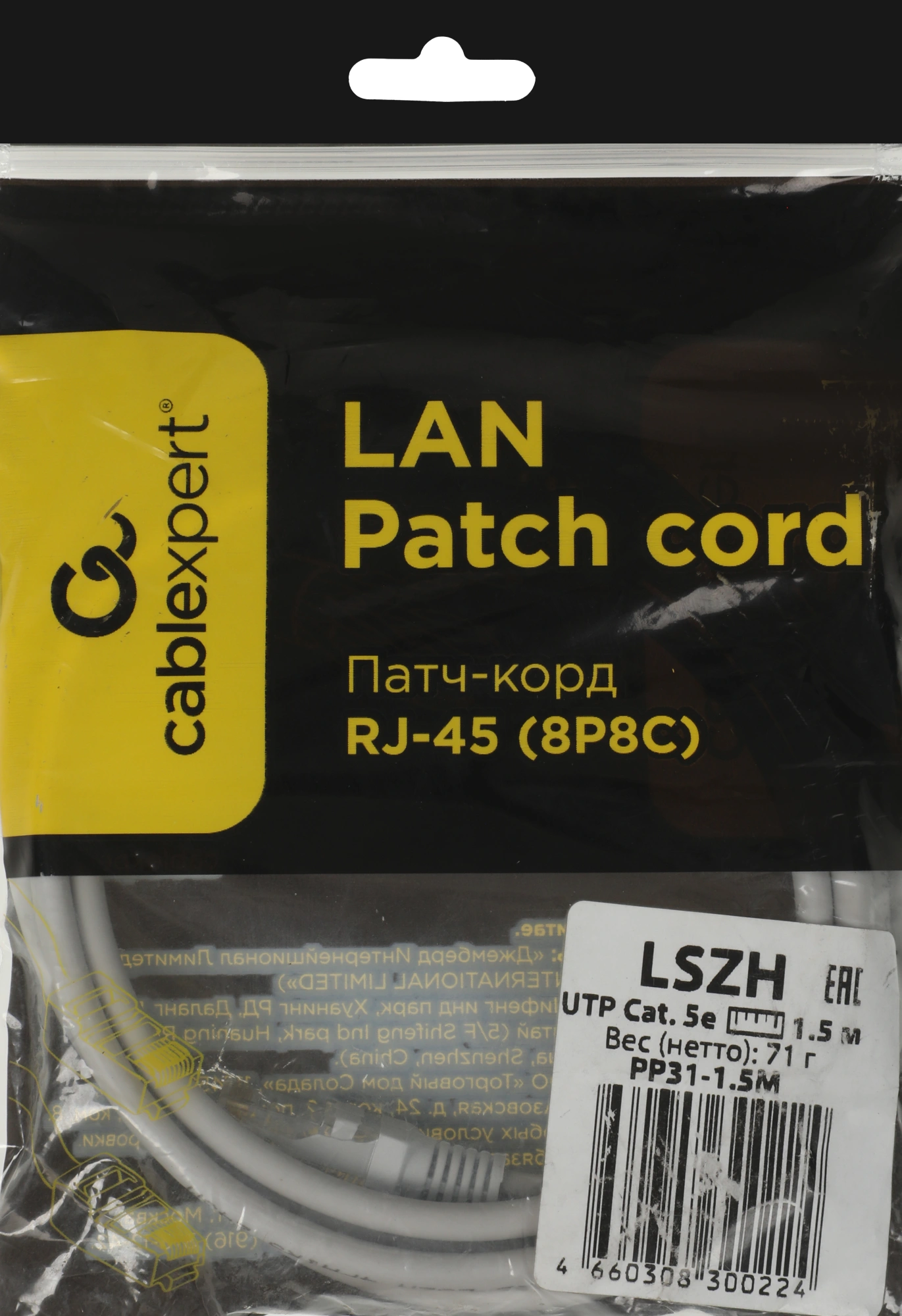 1Гбит/с UTP 4 пары cat.5E CCA molded 1.5м серый RJ...