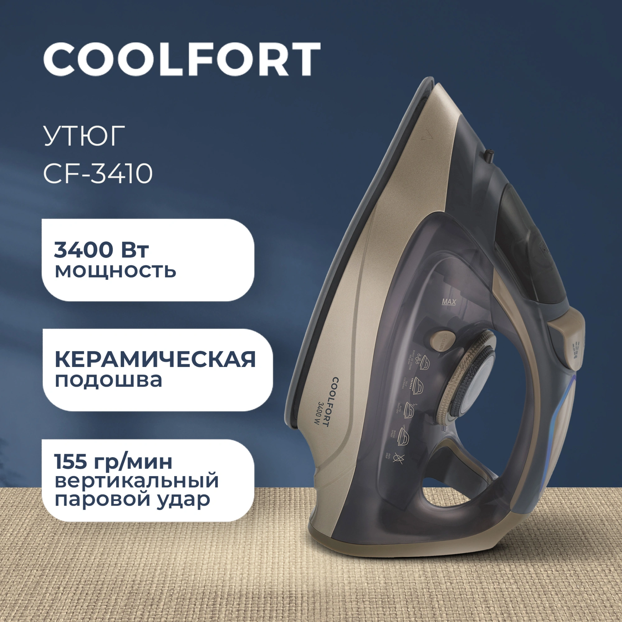 Функциональный утюг COOLFORT CF-3410 сэкономит время на глажение и будет поддерживать ваши любимые вещи в идеальном состоянии. Высокая мощность – 3400 Вт в сочетании с мощным паровым ударом - 155 г/мин – гарантирует высокую эффективность разглаживания даже самых сложных складок. Подошва Coolfort Ultimate Care с керамическим покрытием обеспечивает утюгу легкое скольжение по ткани.