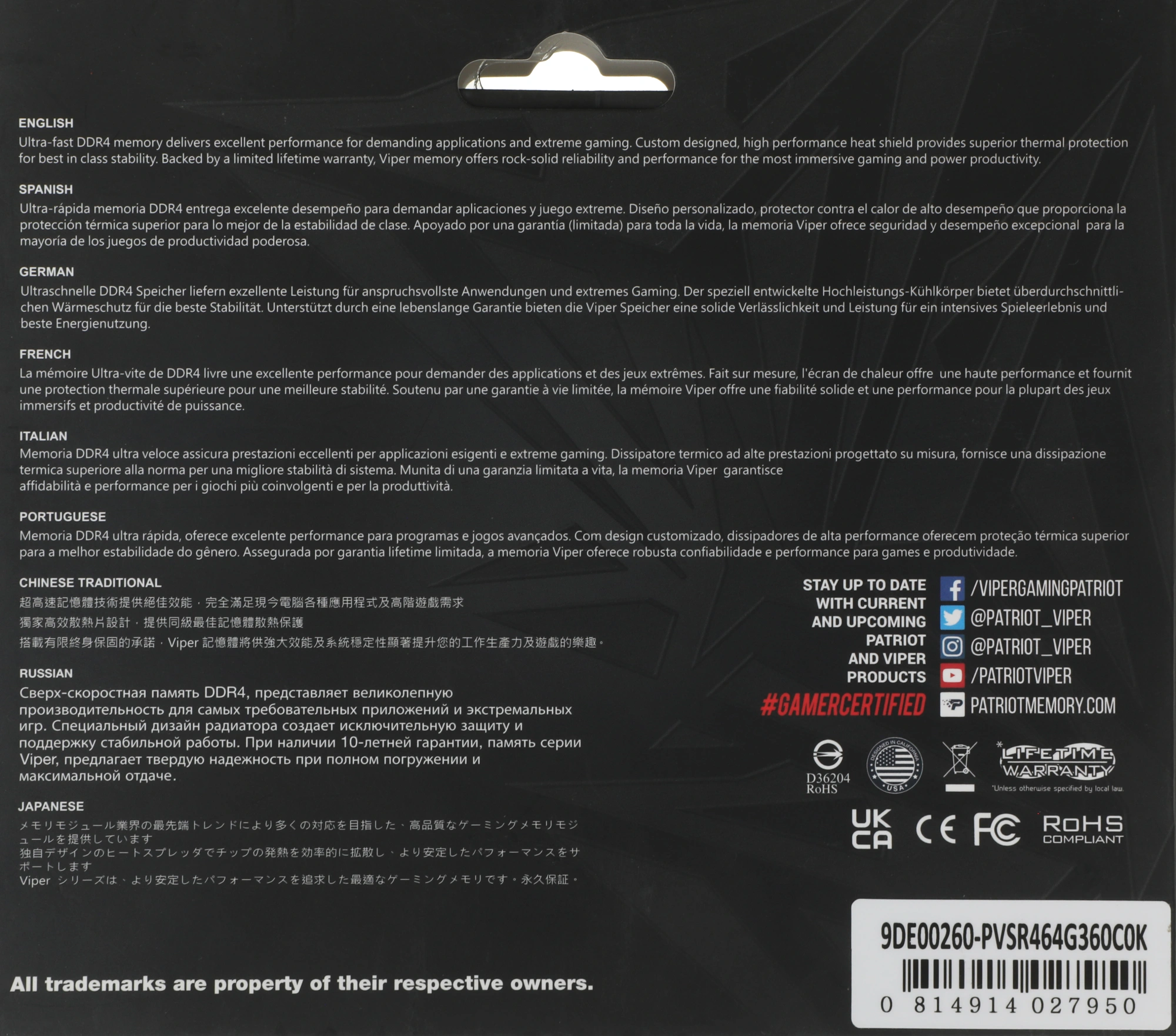 Viper Steel RGB RTL Gaming PC4-28800 CL20 DIMM 28...