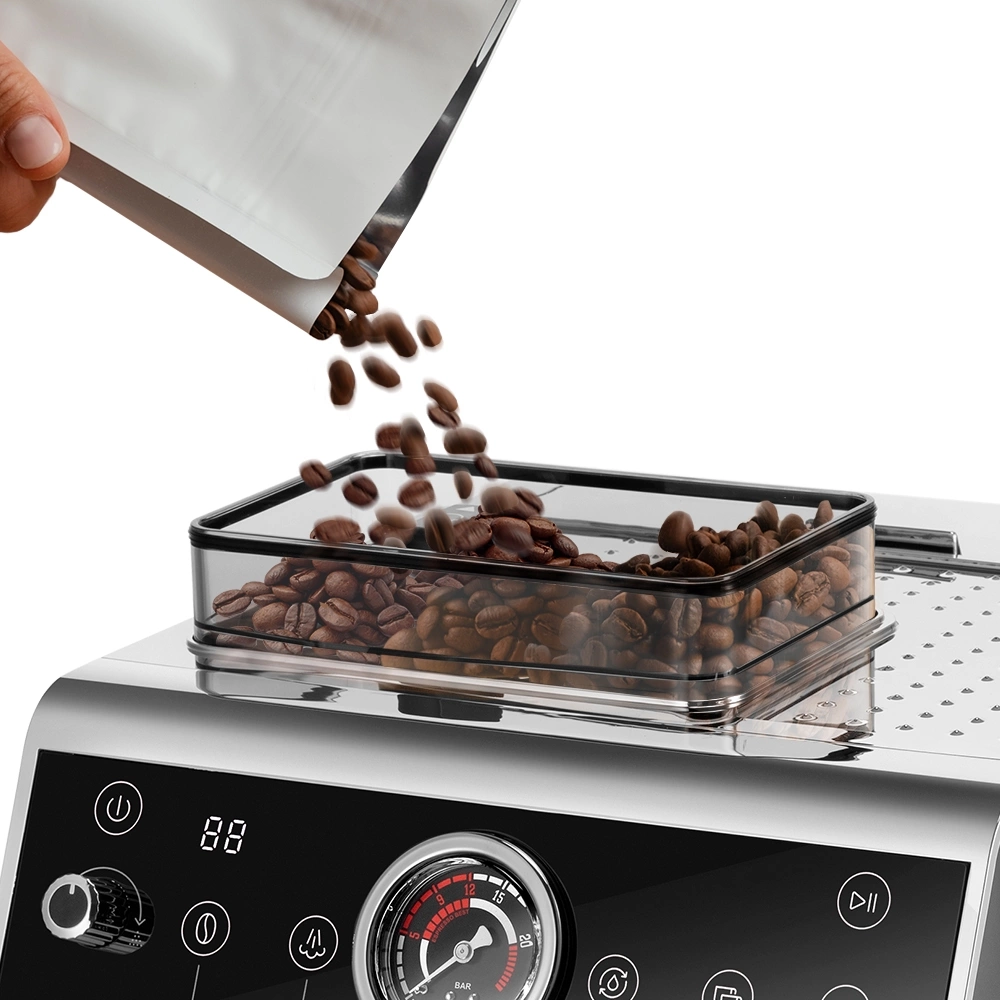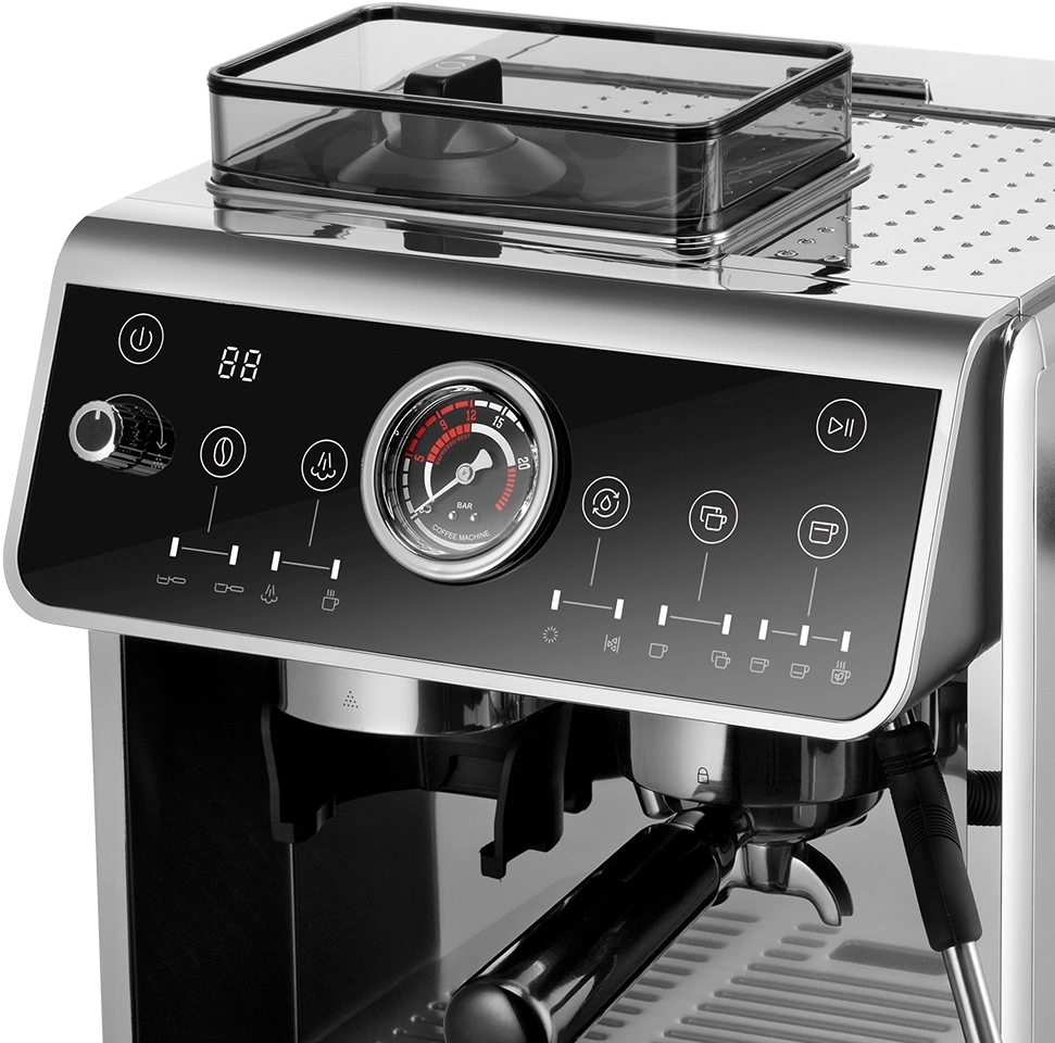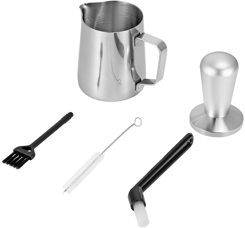 встроенная кофемолка, капучинатор, манометр, съемный дренажный отсек для капель, съемный поддон для капель, съемный резервуар для воды, темпер