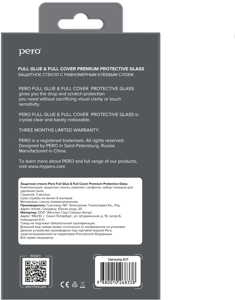 Защитное стекло PERO FULL COVER & FULL GLUE GLASS имеет прокрашенную тонкую рамку по периметру. Комплектация: защитное стекло, влажная и сухая салфетка, стикеры для удаления пыли.
