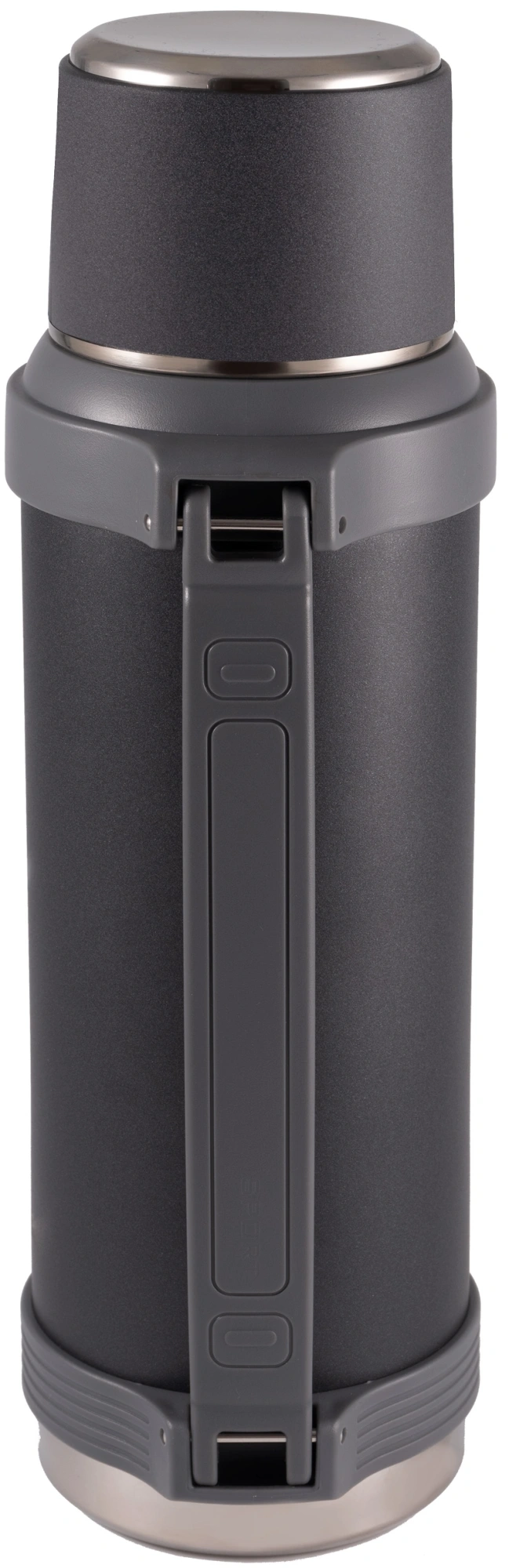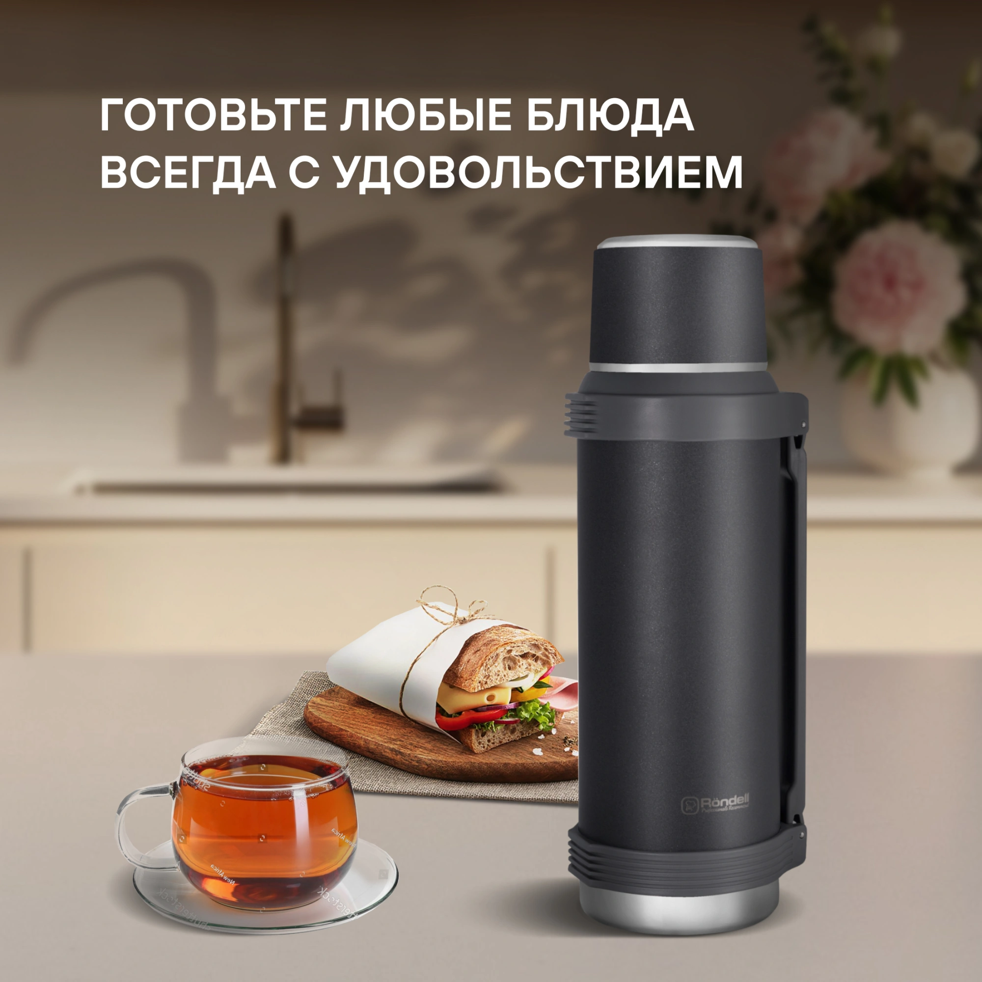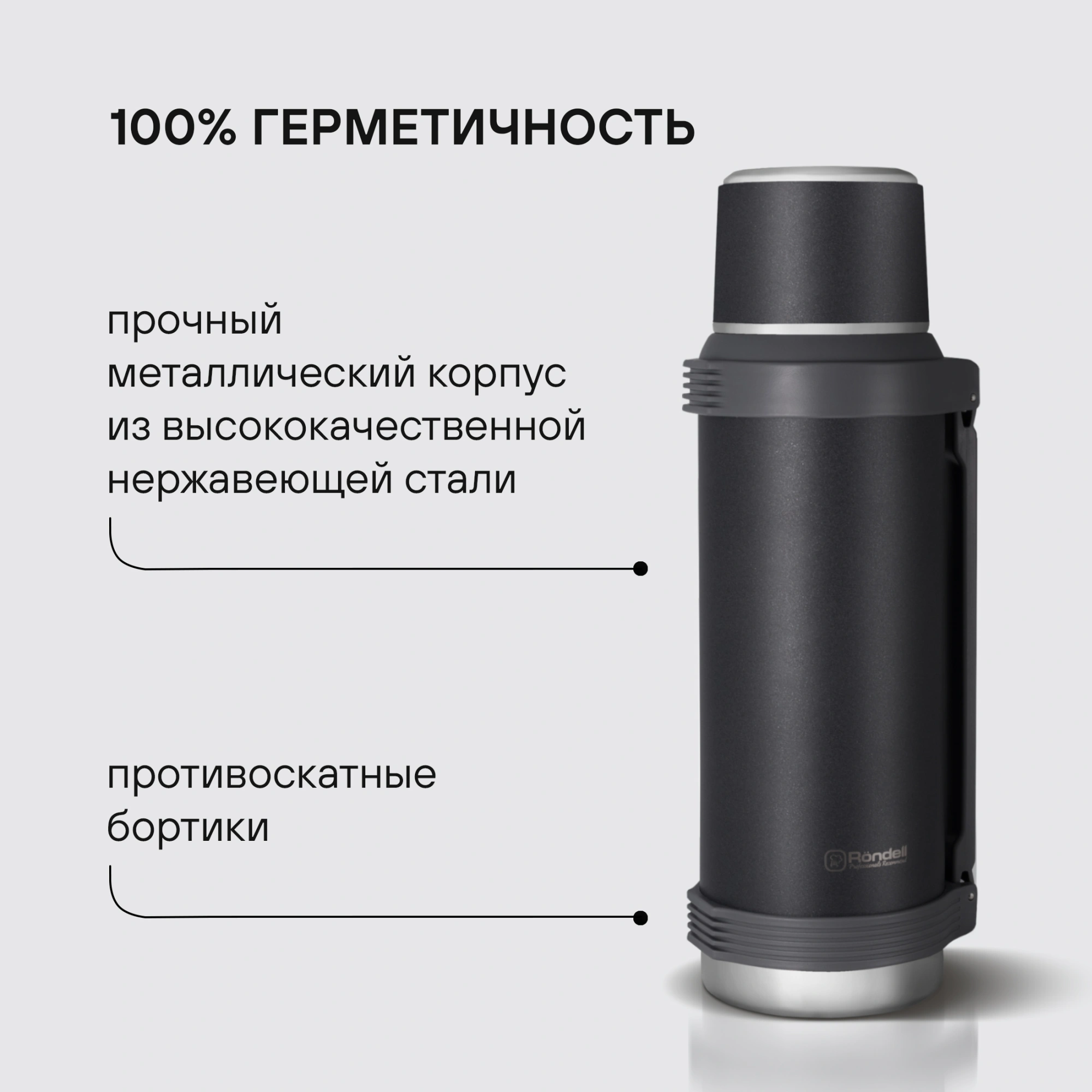 Нерж. сталь для внешней и внутр. колбы. Вакуумный слой с медной металлизацией внутр. колбы. Кнопочная система открывания и наливания без потери температуры. Амортизирующая ручка. Фильтр для заваривания листового чая в термосе. Крышка-чашка и доп. пластиковая чашка. Для горячих и холодных напитков.
