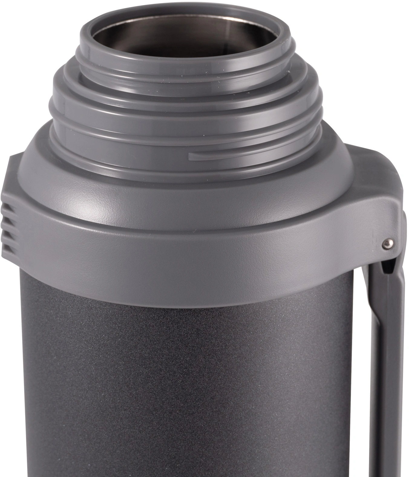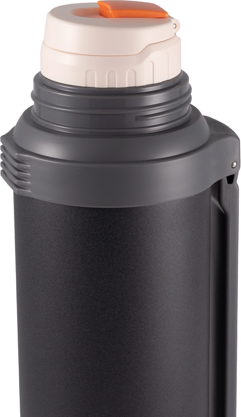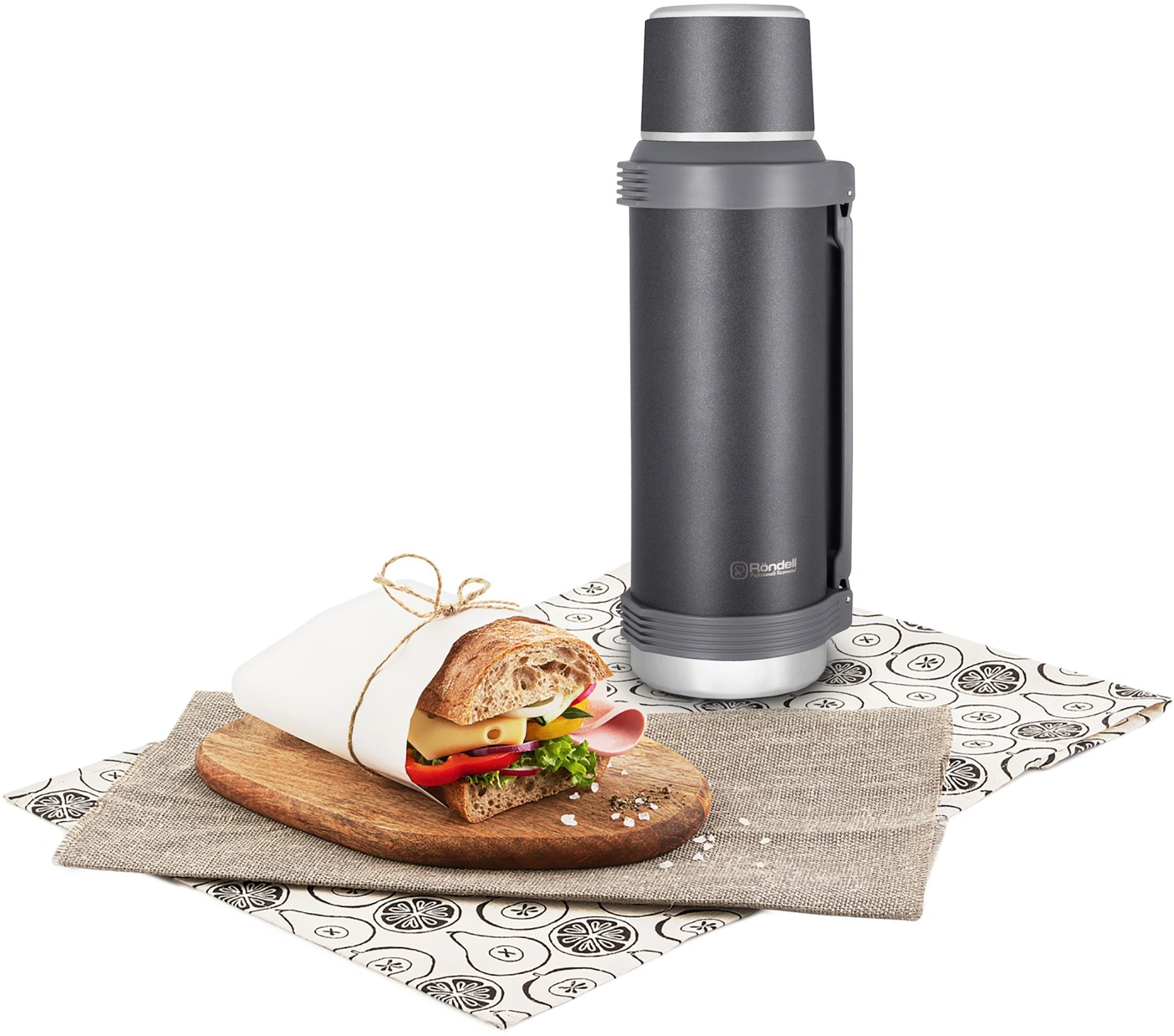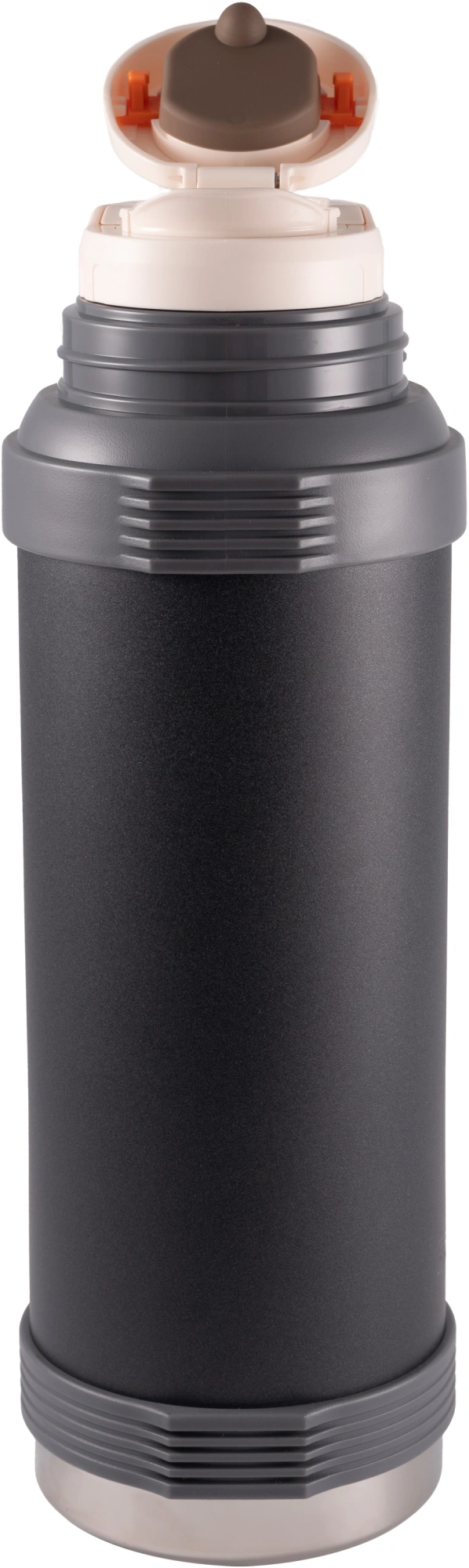 Нерж. сталь для внешней и внутр. колбы. Вакуумный слой с медной металлизацией внутр. колбы. Кнопочная система открывания и наливания без потери температуры. Амортизирующая ручка. Фильтр для заваривания листового чая в термосе. Крышка-чашка и доп. пластиковая чашка. Для горячих и холодных напитков.