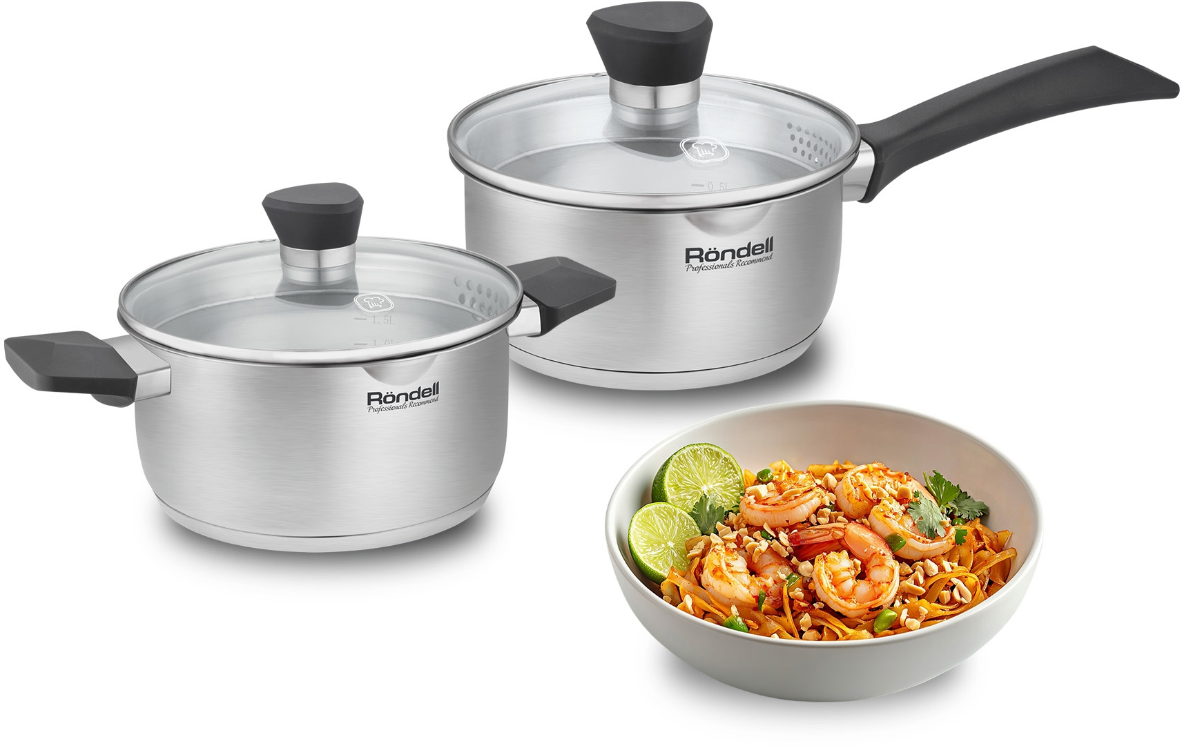 Нерж. сталь 18/10. Тройное дно без воздушных полостей. Оригинальный дизайн крышки для удобного слива жидкости без дуршлага. Ручки из бакелита с покрытием soft touch. Внутренние отметки литража. Для всех видов плит, включая индукционные. Гарантия на сталь – 25 лет