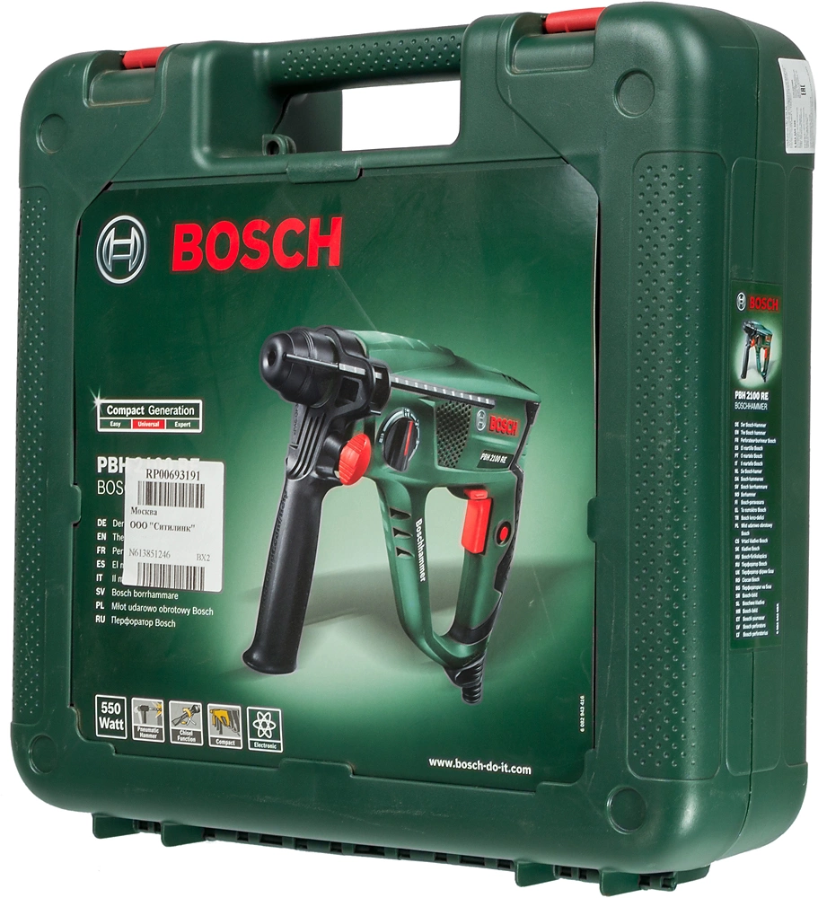 Перфоратор, дополнительная рукоятка, ограничитель глубины, кейс.
