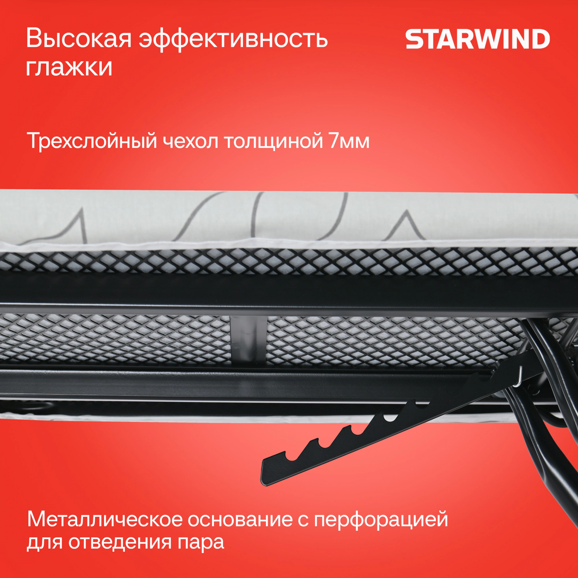 STARWIND SW-IB1248 – это универсальная гладильная доска с размером 122x43 см, которая сочетает в себе удобство использования и прочность. Трехслойный чехол толщиной 7 мм позволяет гладить вещи быстрее, а металлическое основание с перфорацией способствует лучшему отводу пара.
