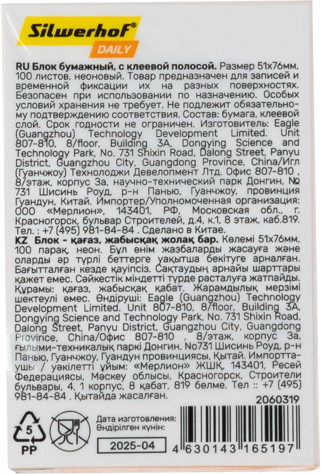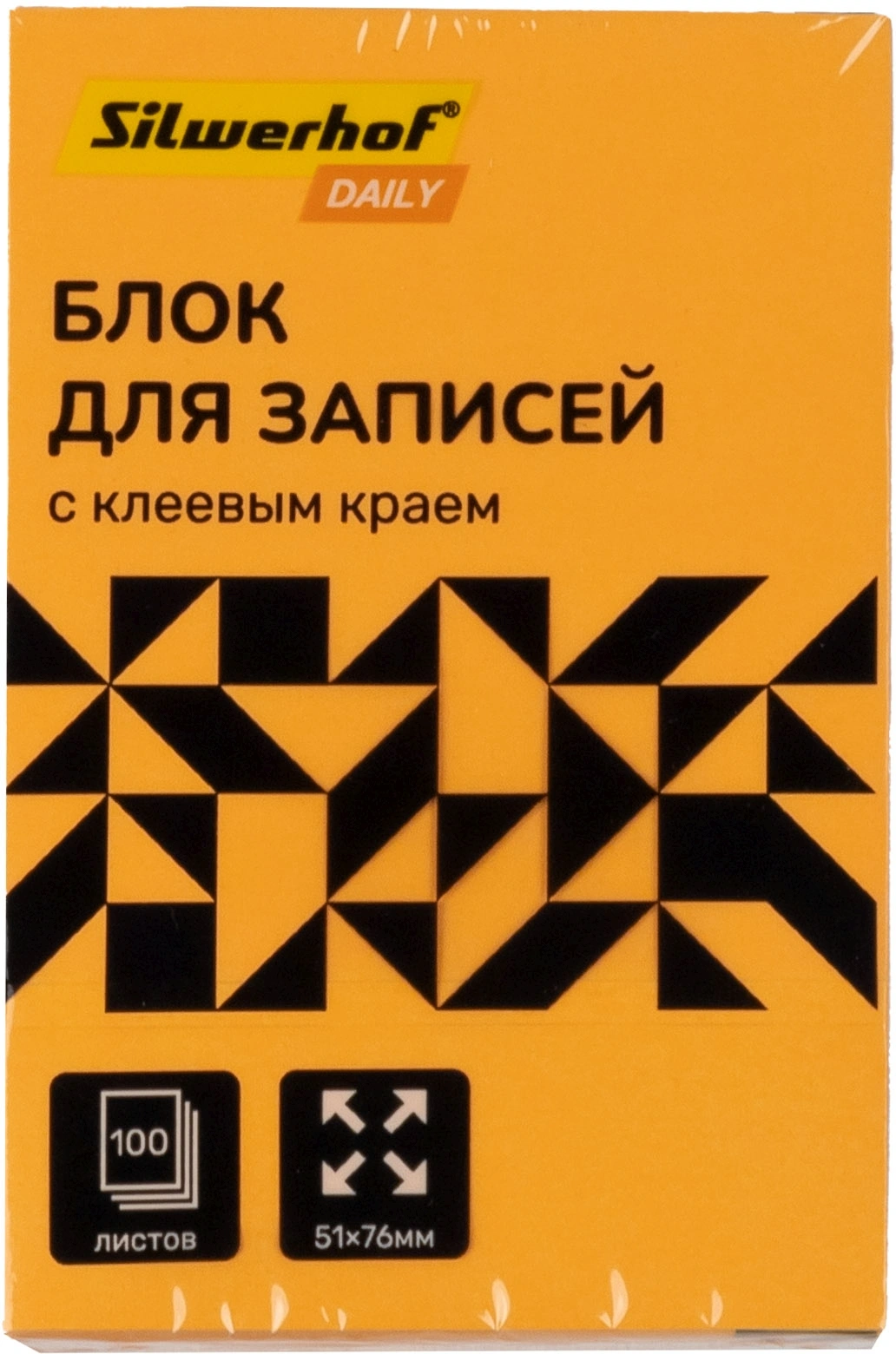 Блок самоклеящийся бумажный Silwerhof Daily 51x76мм 100лист. 75г/м2 неон оранжевый