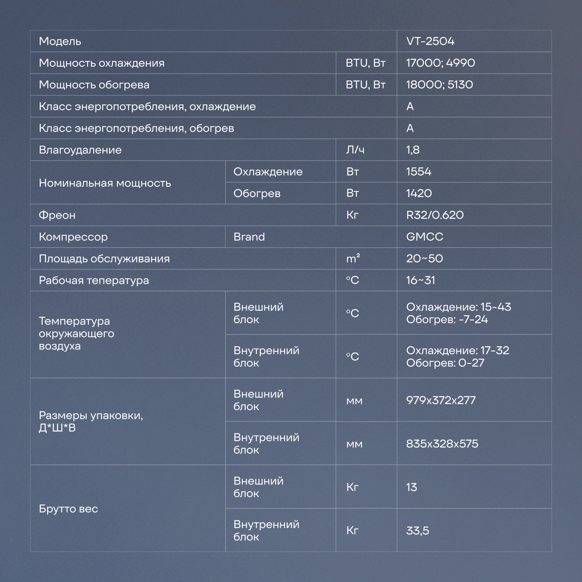 Вес внутреннего блока