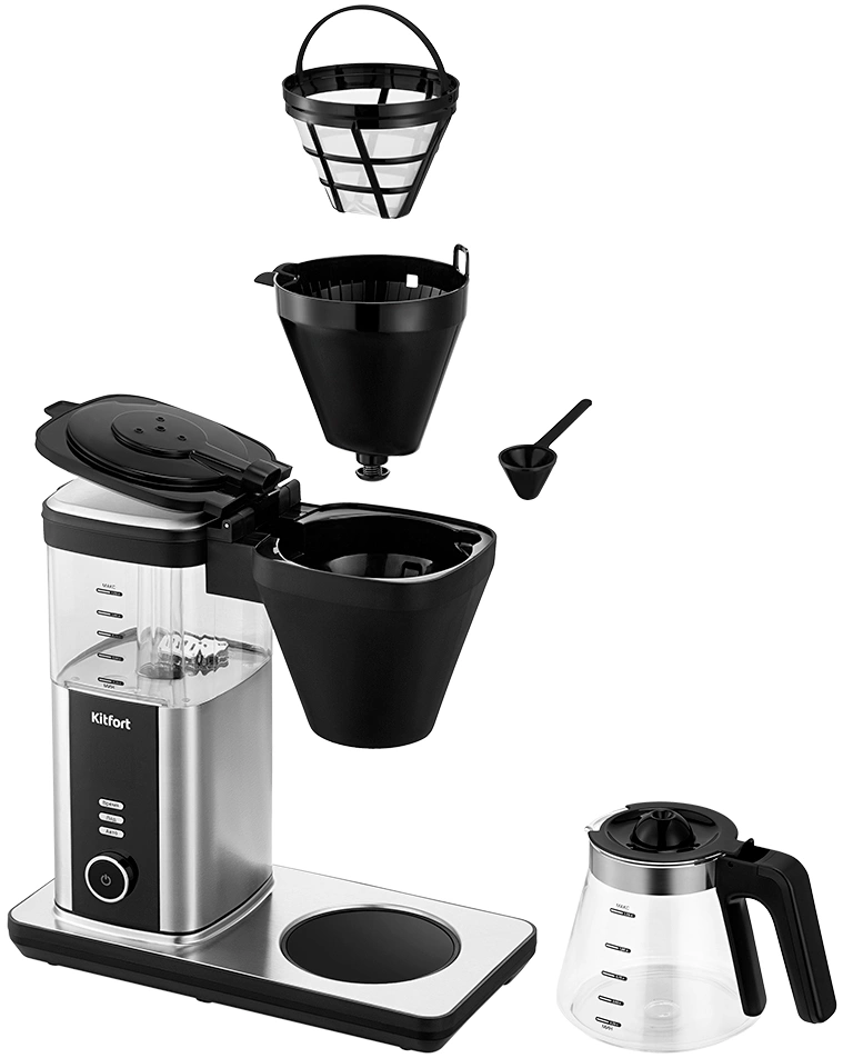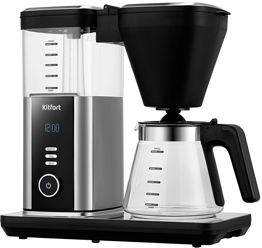 Капельная кофеварка КТ-7213 готовит ароматный чёрный кофе из молотого кофе. Она компактная с простой и удобной панелью управления. Идеально подойдёт для приготовления кофе в домашних условиях или в офисе. Вы можете выбрать приготовление кофе со льдом.