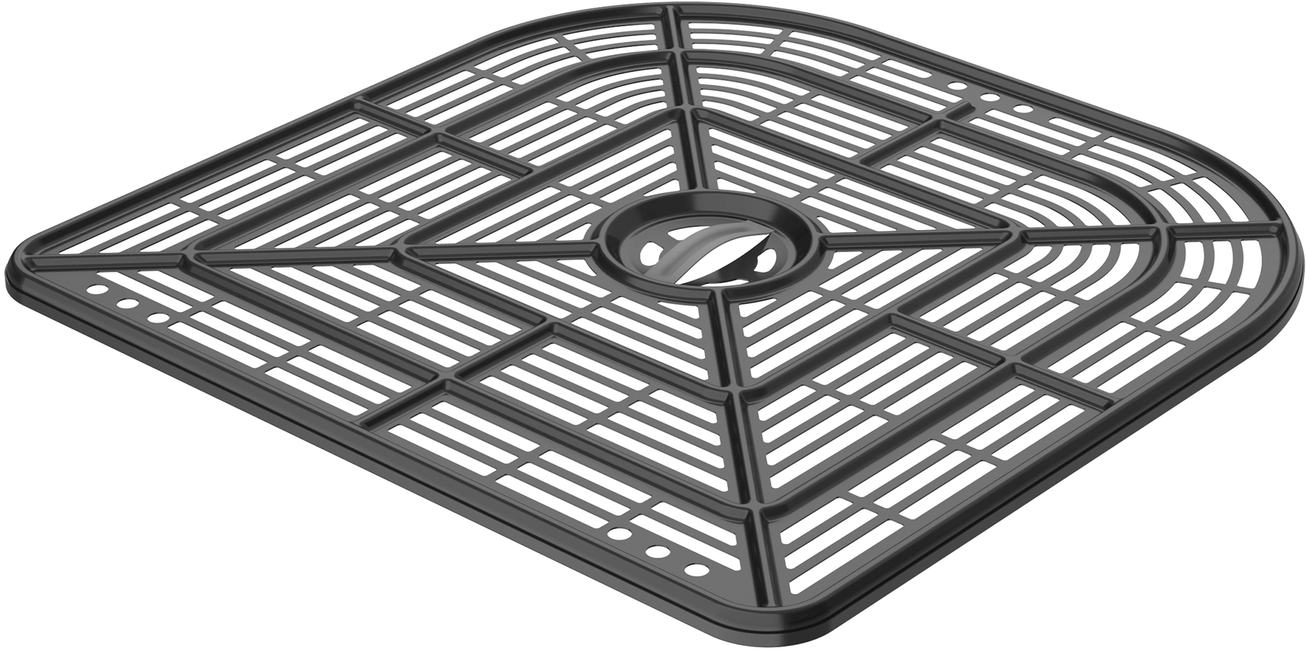 Дно корзины сделано по принипу сковородки гриль, для качественной прожарки стейков.