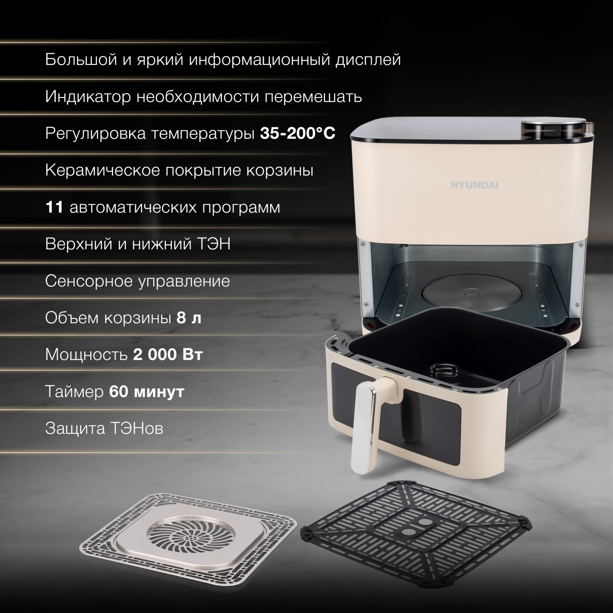 Сенсорное управление, 11 автоматических программ, а так же ручной режим для самостоятельной установки температуры и время приготовления. Замок для защиты от детей. Керамическое покрытие для легкой очистки.