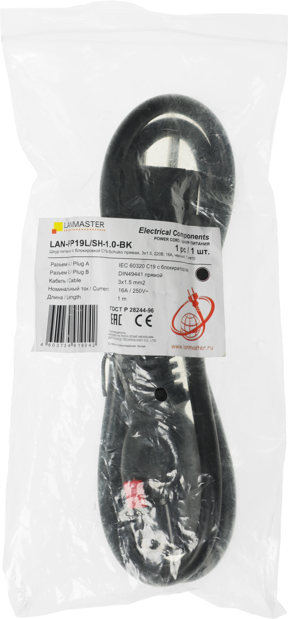 C19-Schuko проводник.:3x1.5мм2 1м 220В 16А черный
