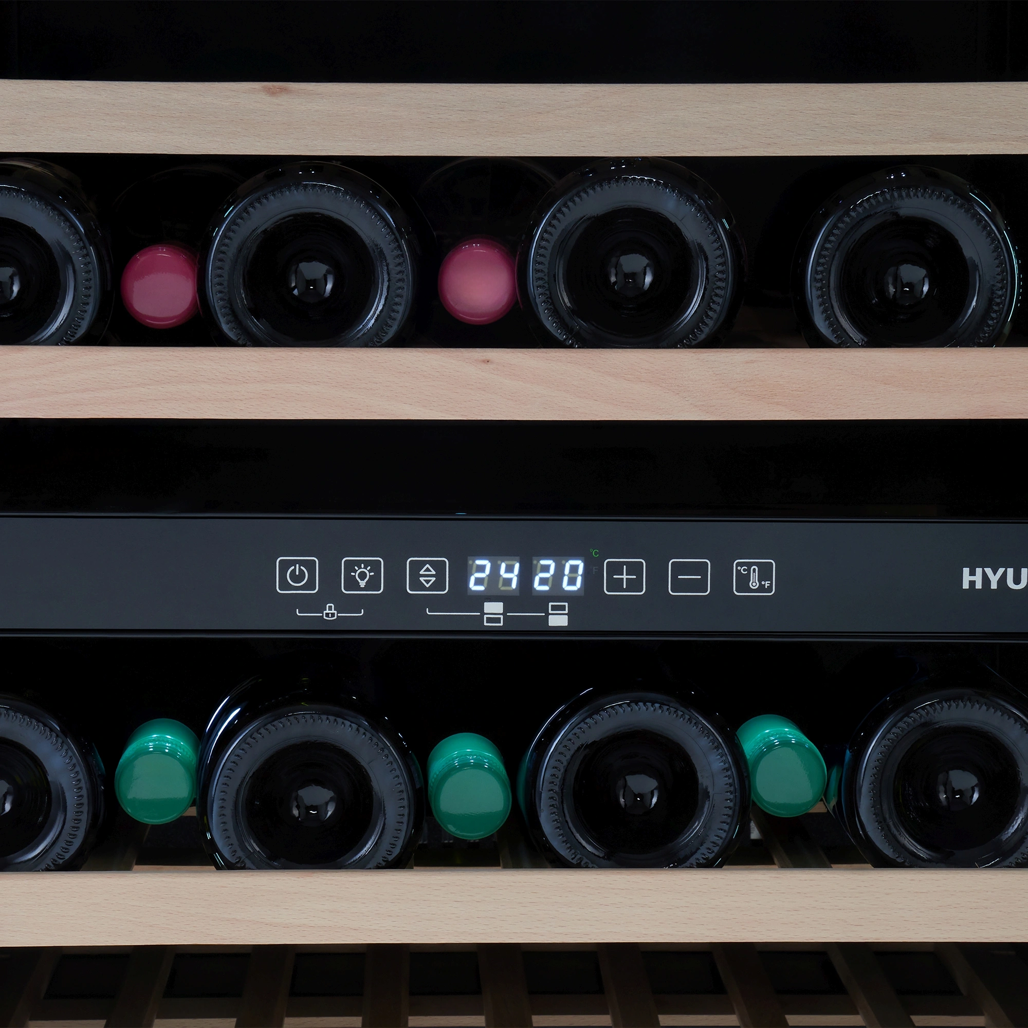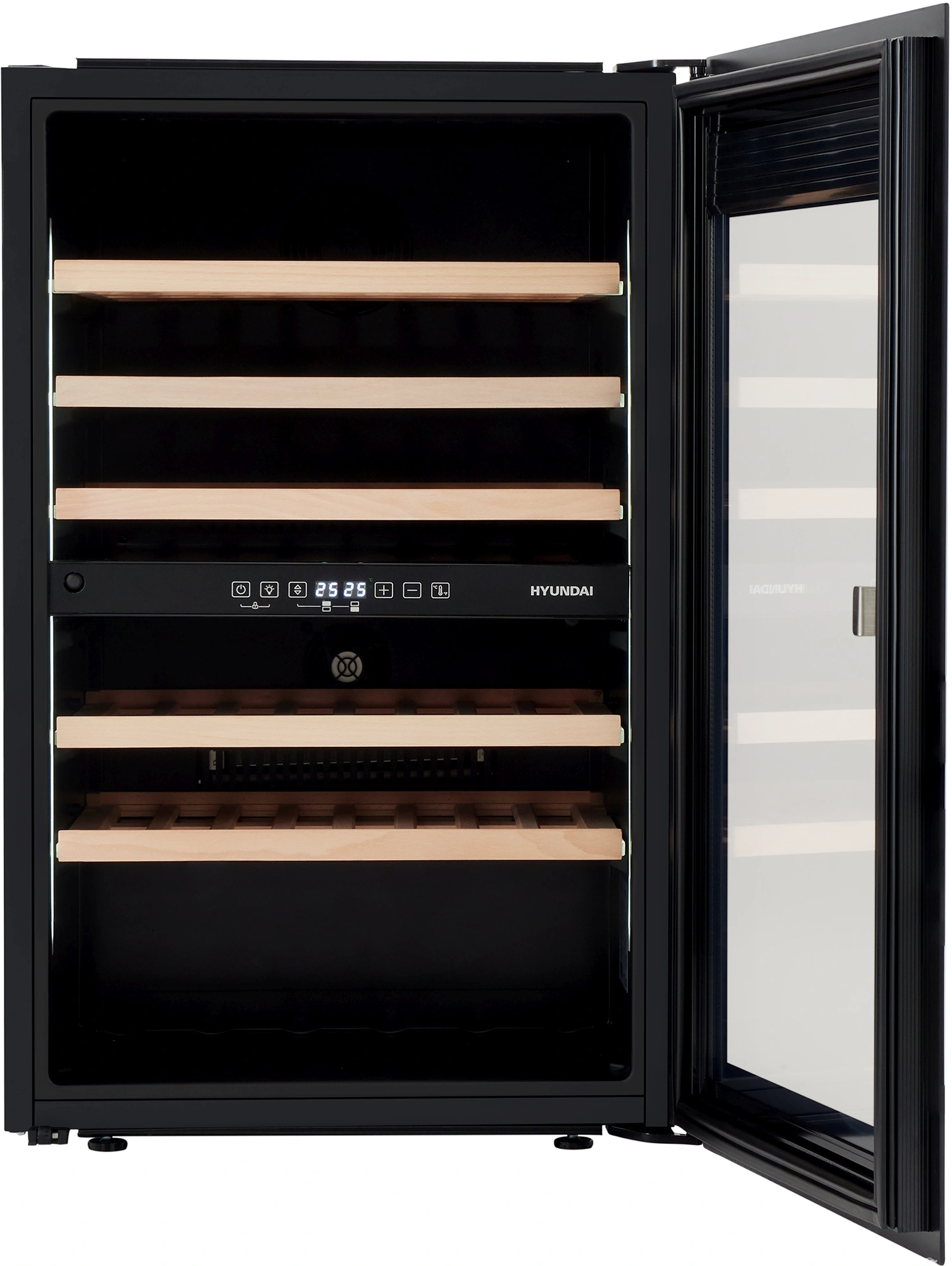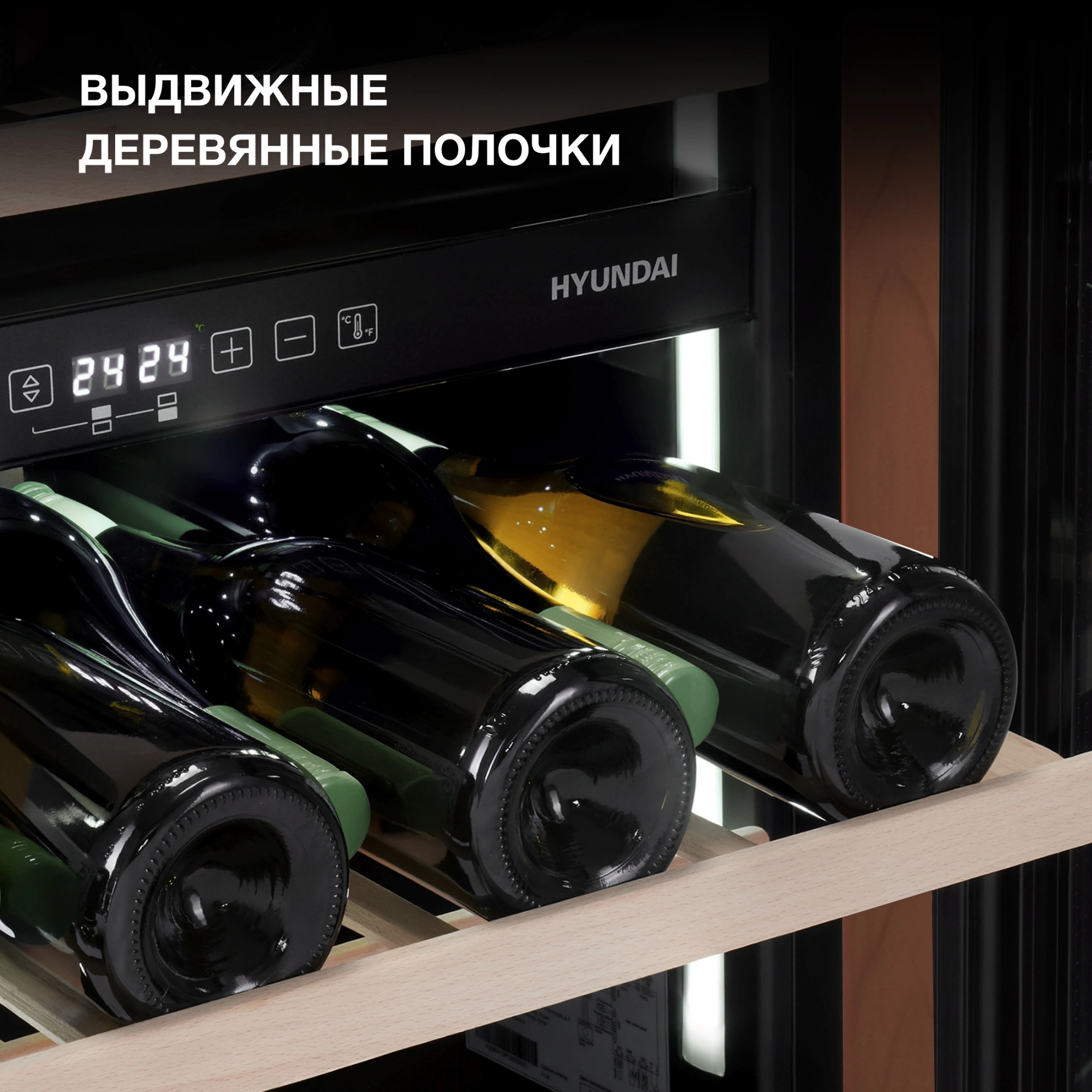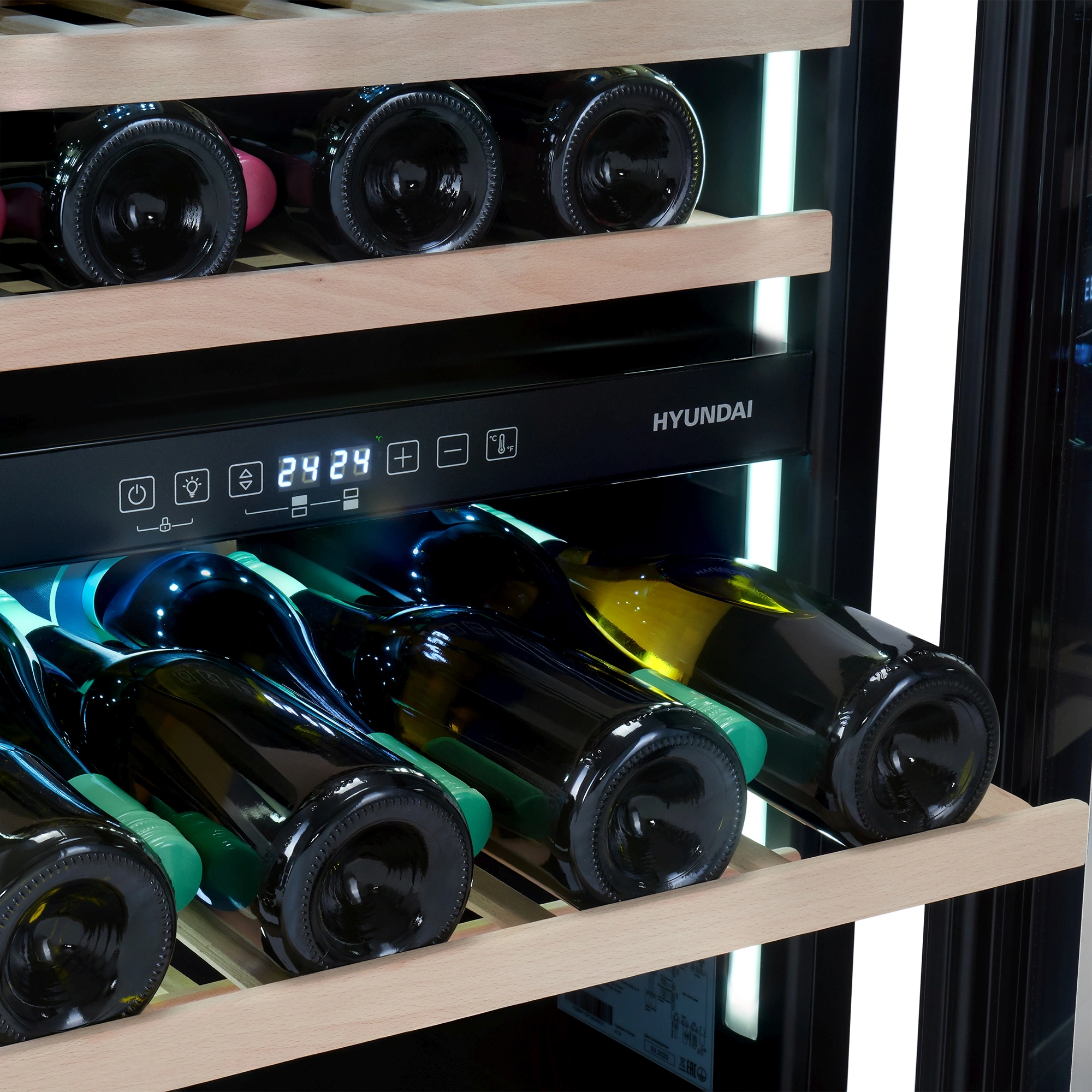 Максимальное количество бутылок: 57; Диапозон температур: 5-22 °C; Количество полок: 5; Автоматическое открываие дверцы; Температурных зон: 2
