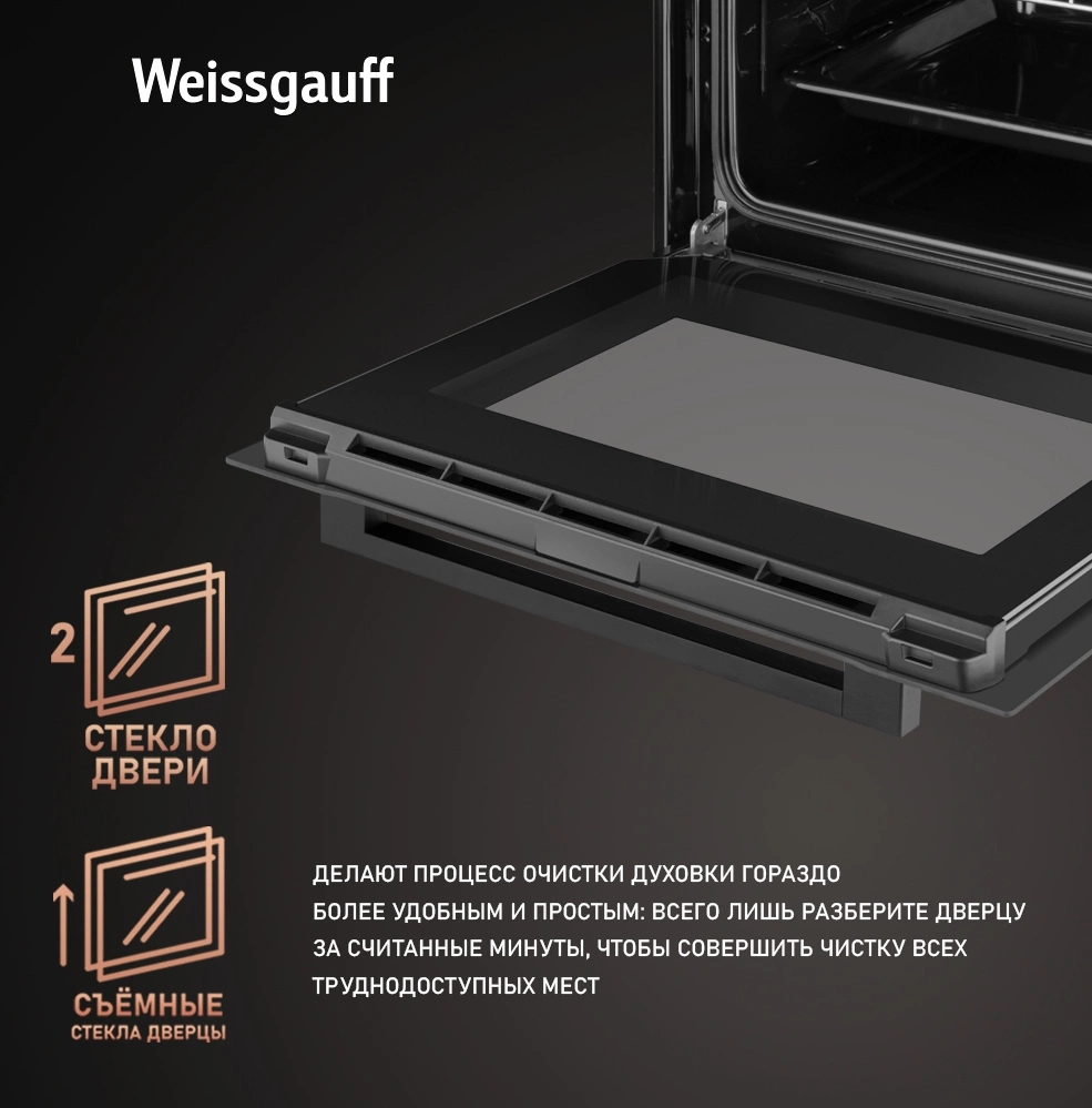 дисплей, полностью стеклянная внутренняя поверхность дверцы духовки, утапливаемые переключатели, электронный программатор