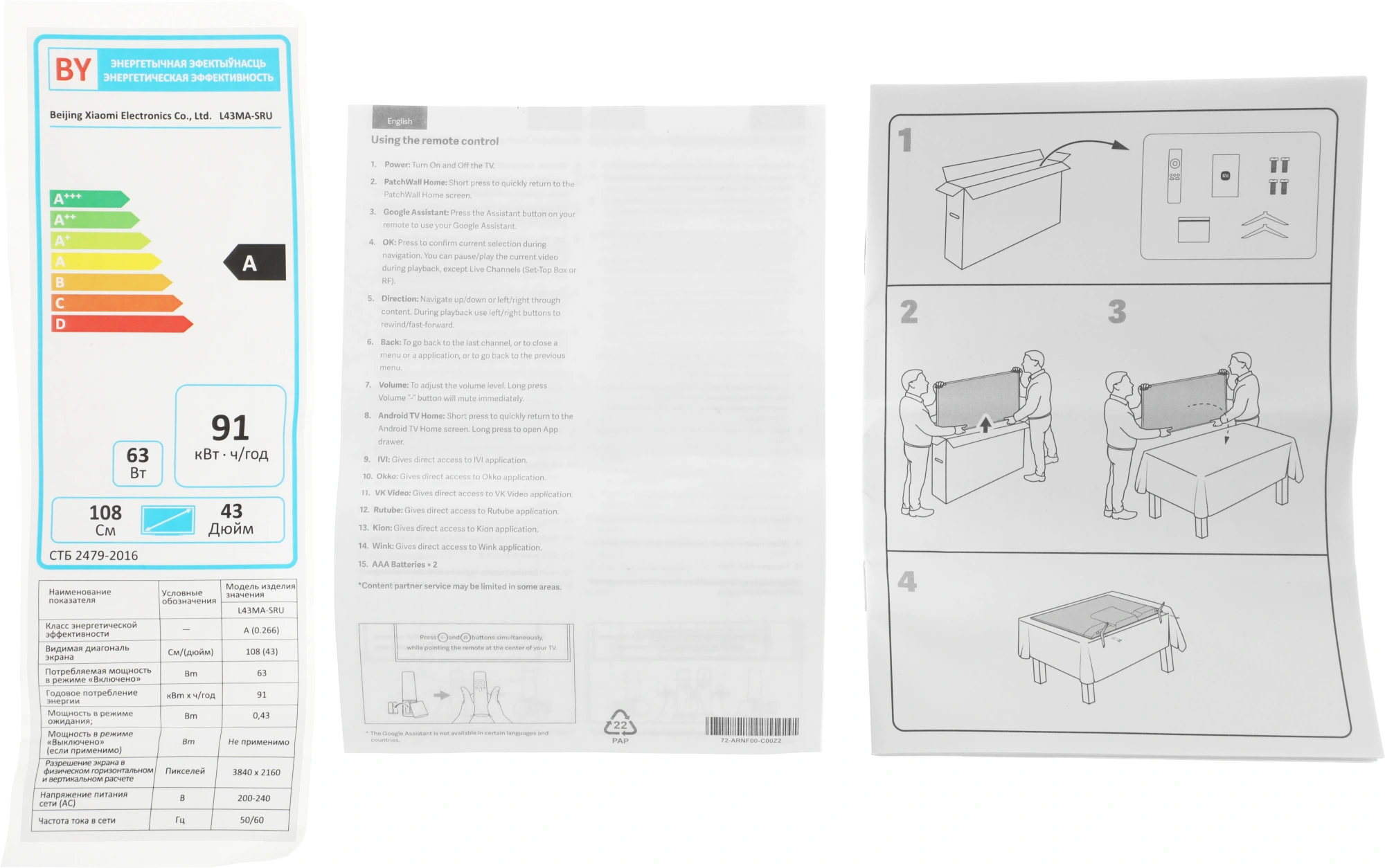 черный 4K Ultra HD 60Hz DVB-T2 DVB-C2 DVB-S2 USB W...